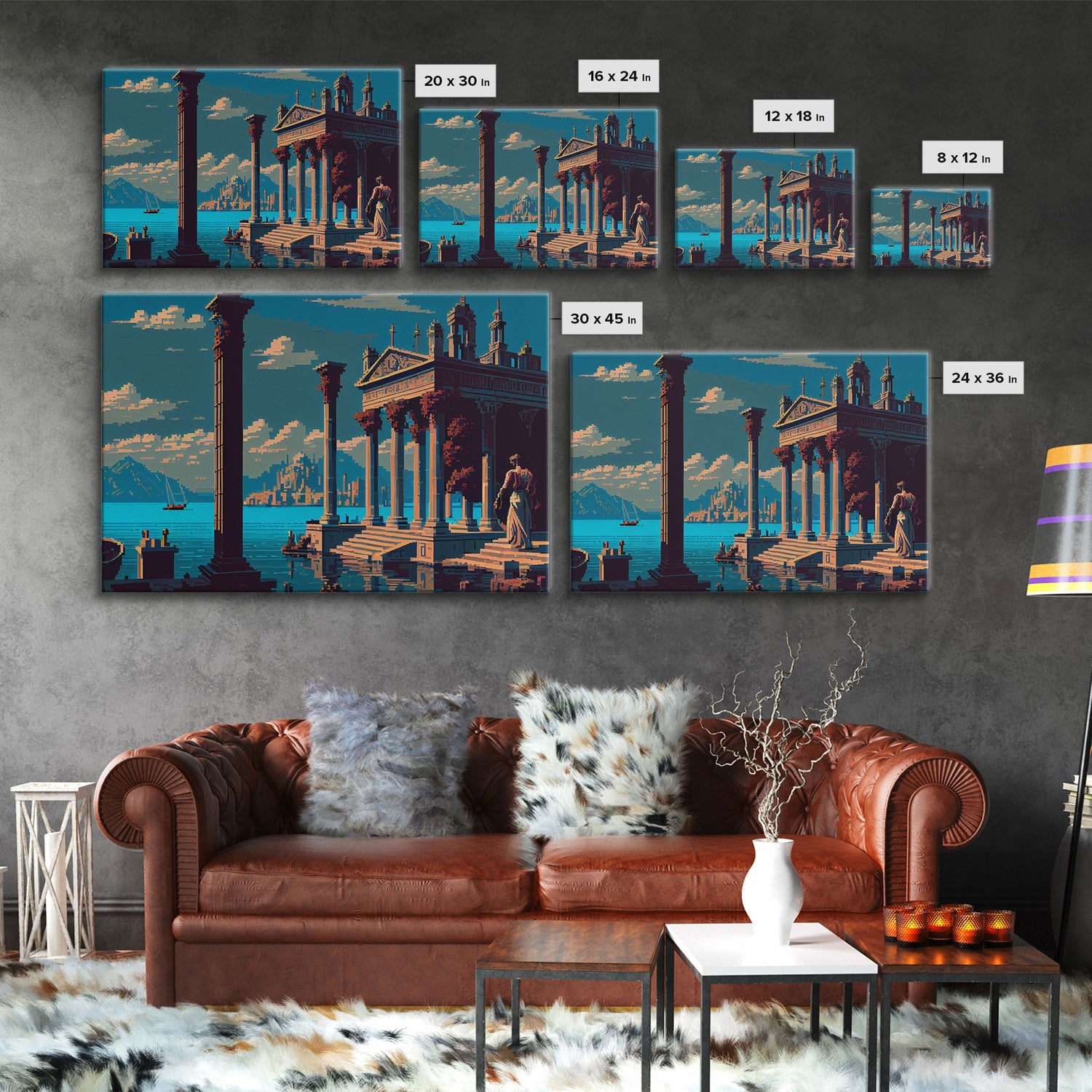 Ancient Roman Architecture, 8 bit pixel art, framed canvas print - 8x12 Inches / Gallery Wrap Canvas - Ready To Hang is backordered and will ship as soon as it is back in stock.