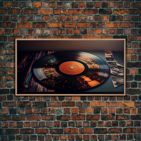 Vinyl record wall art, abstract, mountains double exposure on vinyl, framed canvas print wall art