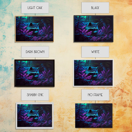 - Up to 60% offNuevArt Cute racoon in the forest, vaporwave aesthetic animal art, framed canvas print, colorful animal art In stock (3599964 units)From $4999 USD$9999Unit price /Unavailable