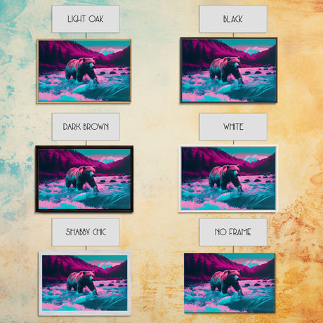 - Up to 60% offNuevArt Grizzly bear crossing a river, vaporwave style animal print art, framed canvas print In stock (3599964 units)From $4999 USD$9999Unit price /Unavailable