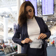 • Two zippered pockets can hold your credit cards, passport, tickets, receipts, boarding pass, and cash