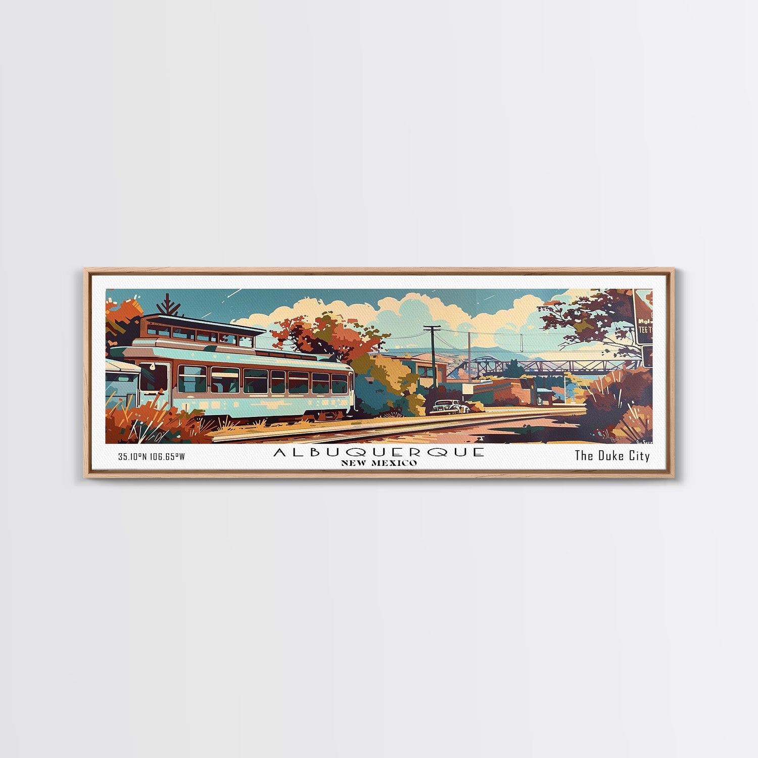 Albuquerque New Mexico Panoramic Painting, Mid Century Modern Framed Canvas Print, Retro Pop Art Travel Poster, Wall Decor, Office Art
