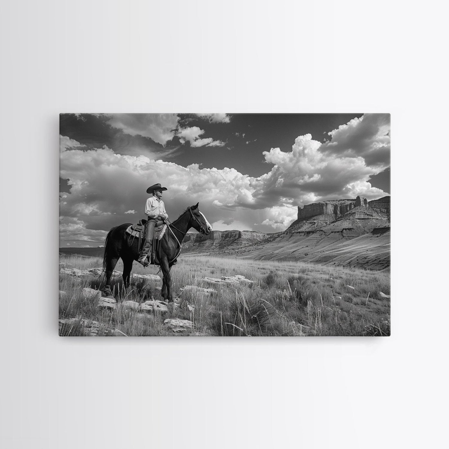 Arizona Cowboy Black and White Photography Print, Framed Canvas Print or Metal Art, Western Decor, Country Art, Living Room Art