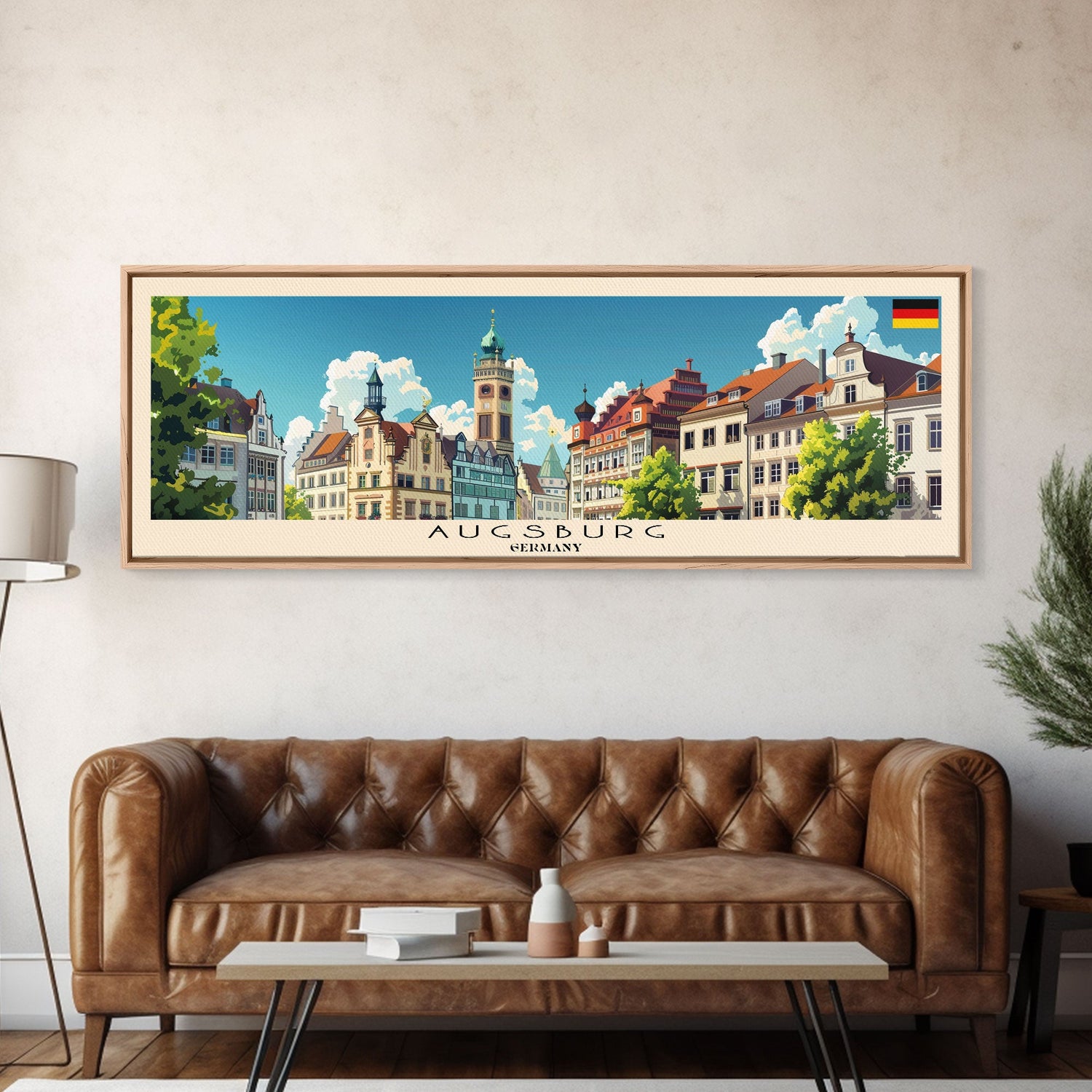 Augsburg Germany Panoramic Travel Poster, Framed Canvas Print or Metal Wall Art, Travel Art, Home Decor, Panoramic Painting, Midcentury Art