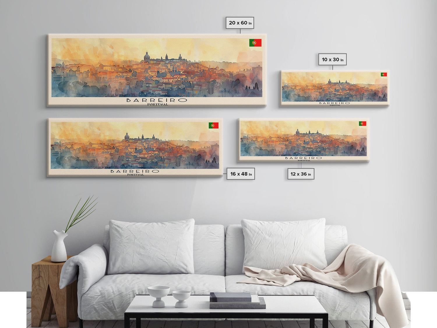 Barreiro Portugal Travel Print Wall Art, Panoramic City Art, Travel Art, Wall Decor, Vacation Gift, Framed Canvas Print Or Metal Art - 10x30 Inches / Gallery Wrap Canvas - Ready To Hang is backordered and will ship as soon as it is back in stock.