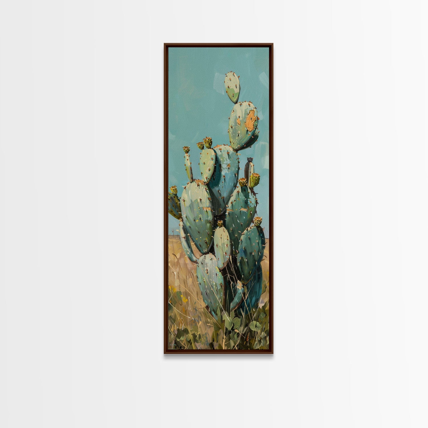 Botanical Desert Art Print of Cactus Framed on Canvas, Framed Western Art, Colorful Landscape Painting, Vertical Art for Living Room - 10x30 Inches / Gallery Wrap Canvas - Ready To Hang is backordered and will ship as soon as it is back in stock.
