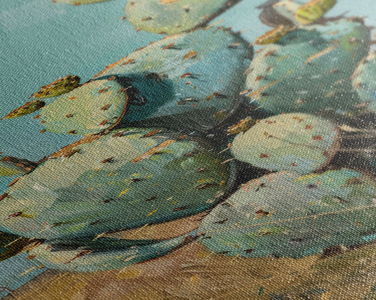 Botanical Desert Art Print of Cactus Framed on Canvas, Framed Western Art, Colorful Landscape Painting, Vertical Art for Living Room