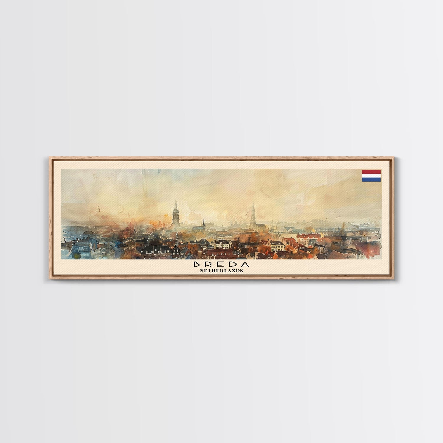 Breda Netherlands Panoramic Travel Poster, Framed Canvas Print or Metal Wall Art, Travel Art, Home Decor, Panoramic Painting, Midcentury Art