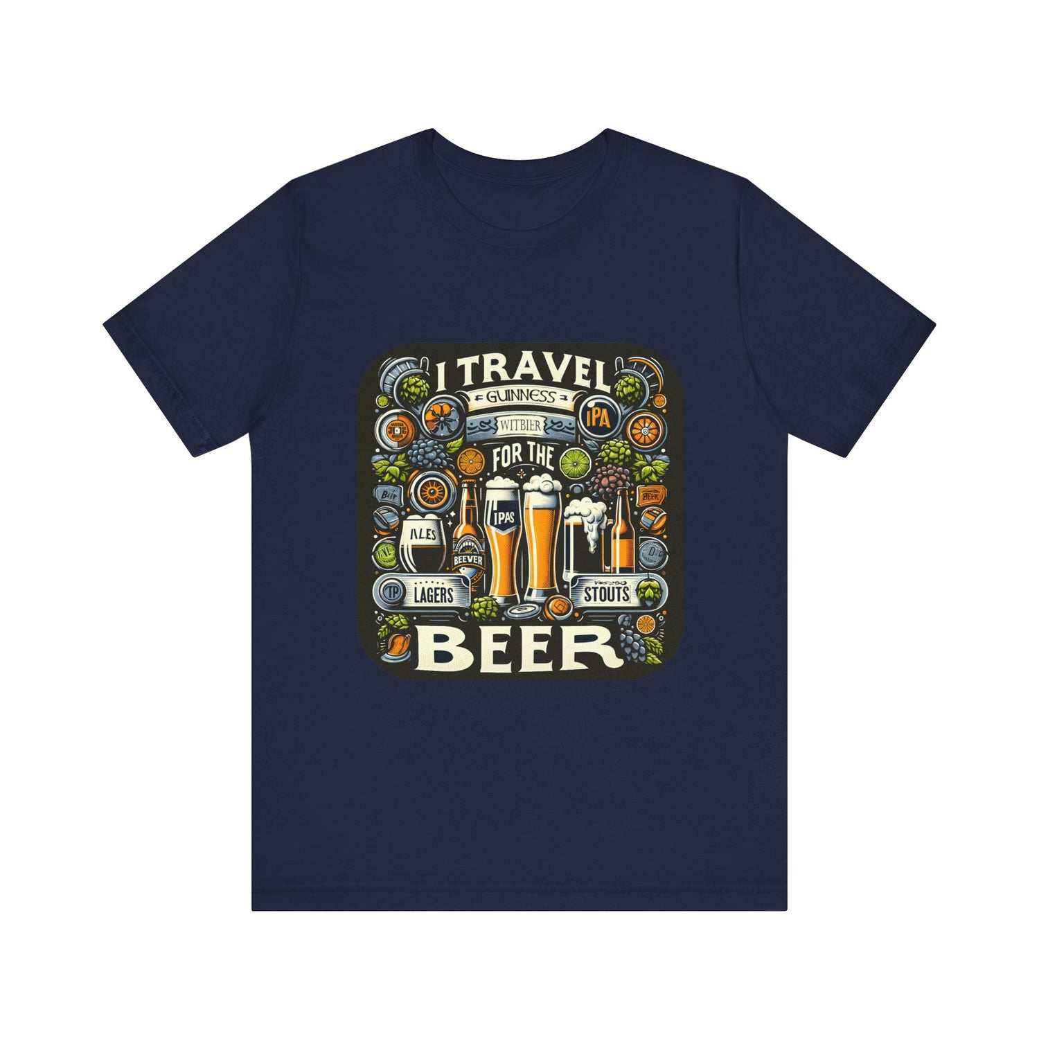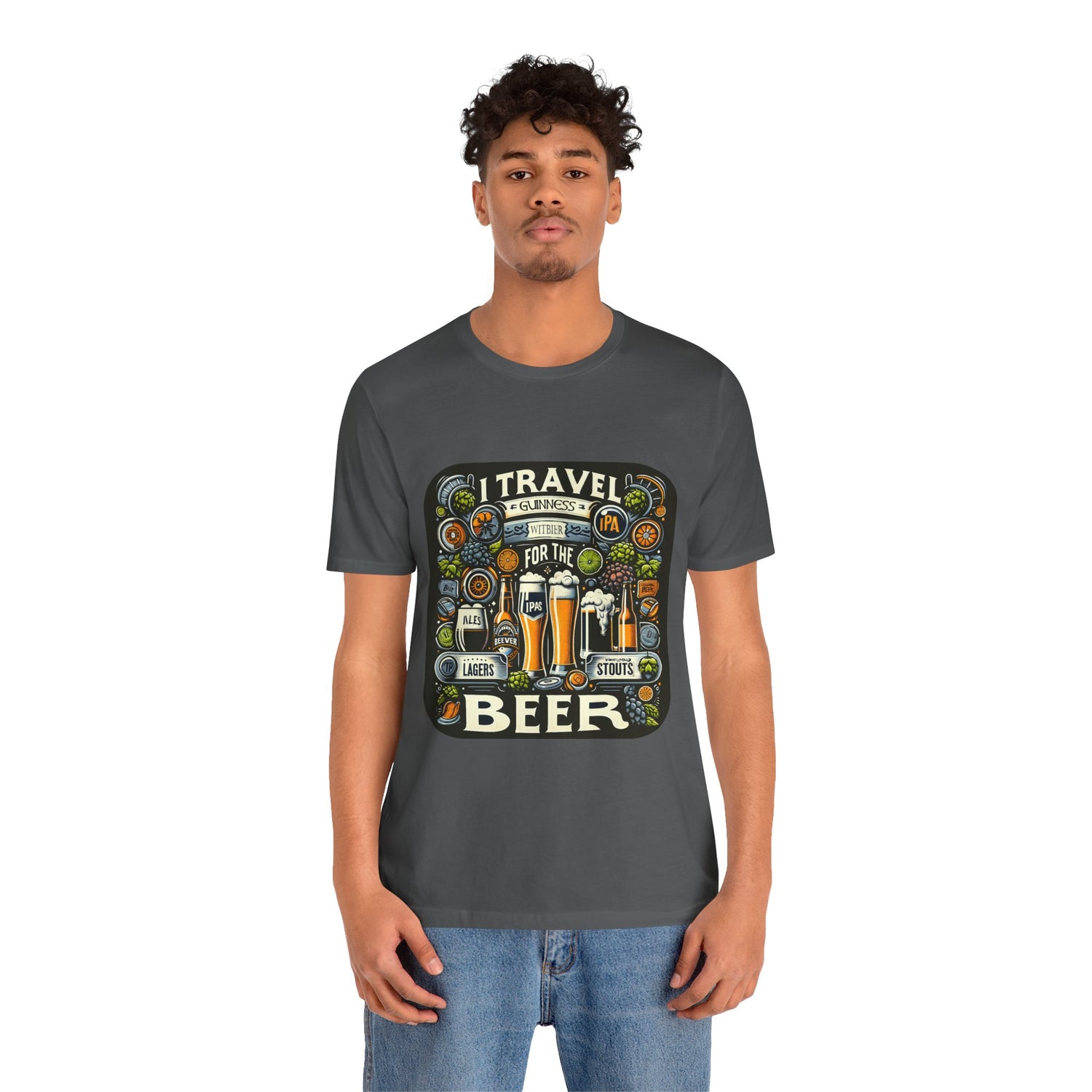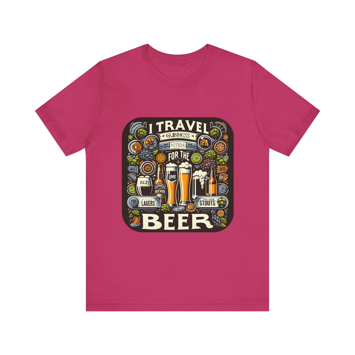 We all have reason for traveling but if yours is to Drink Beer and Have fun This shirt lets everyone know it! Show your passion loud and clear with this custom full-color shirt.