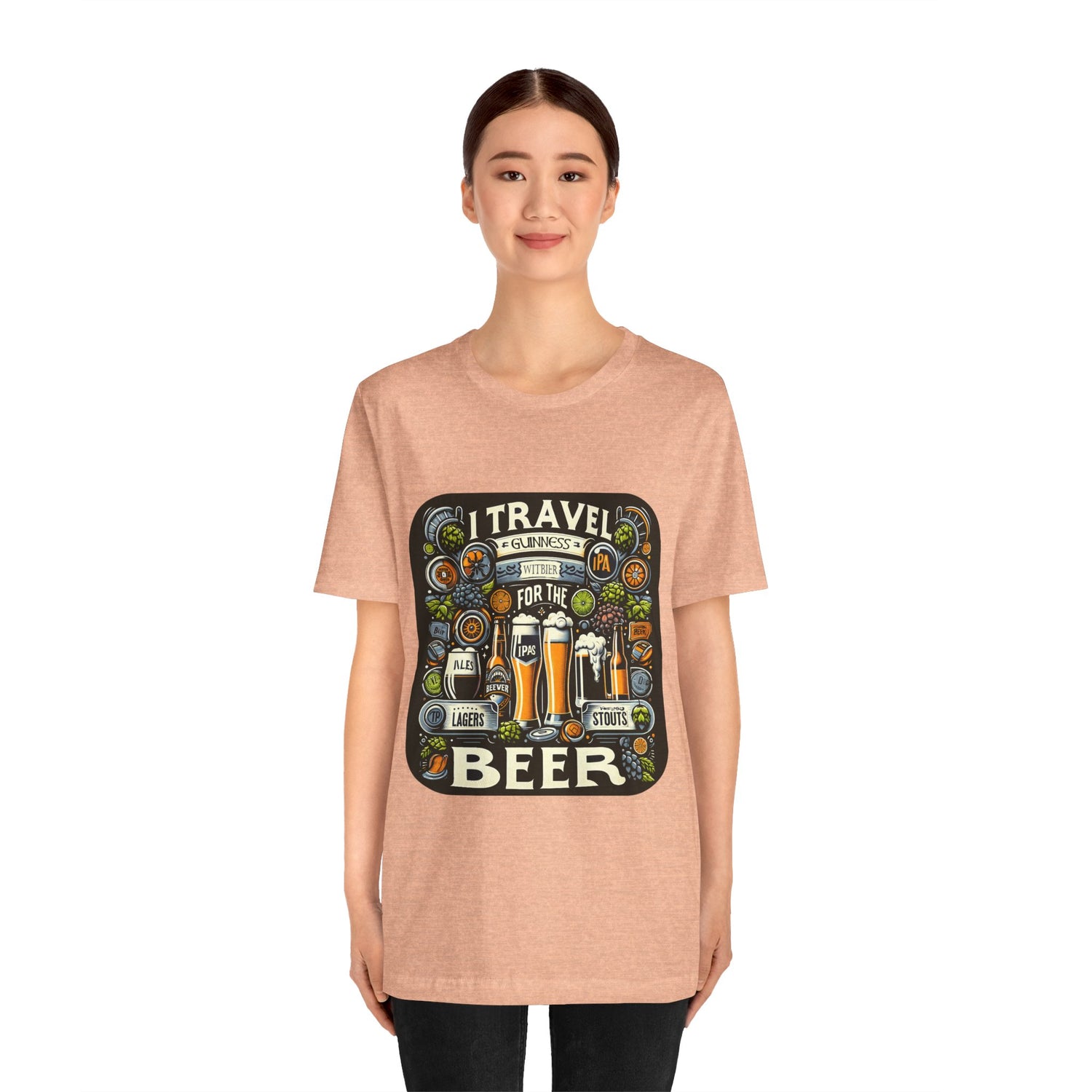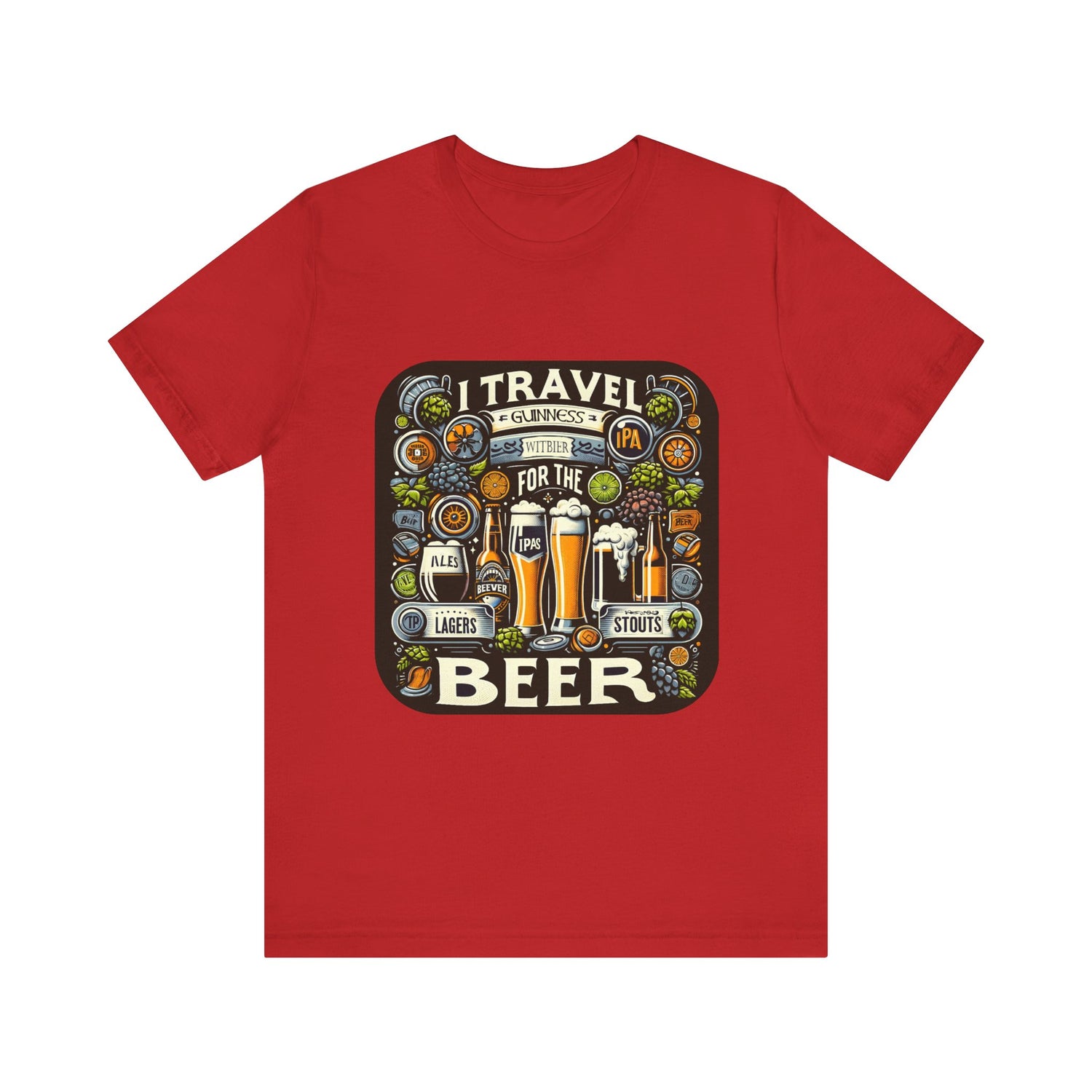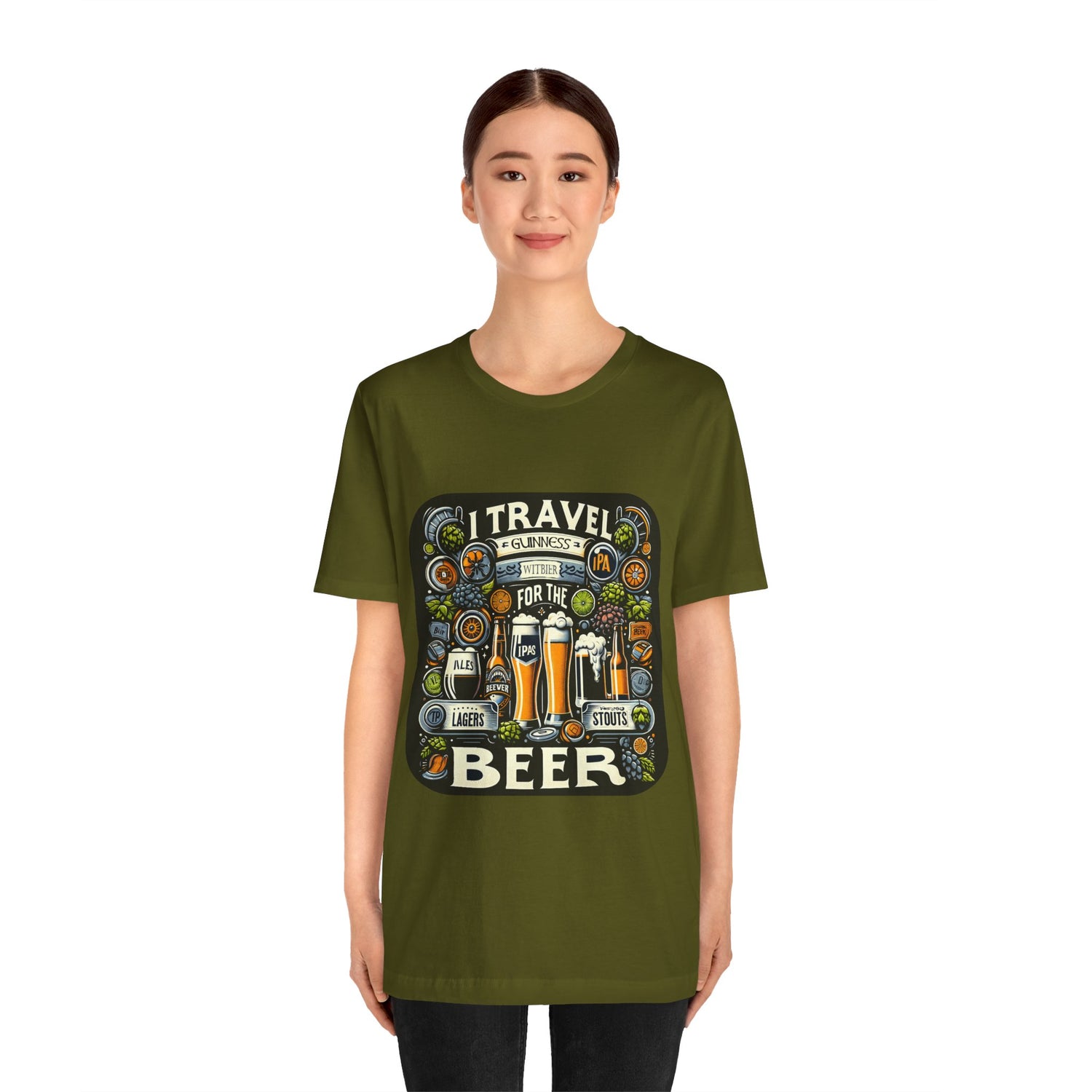 We all have reason for traveling but if yours is to Drink Beer and Have fun This shirt lets everyone know it! Show your passion loud and clear with this custom full-color shirt.