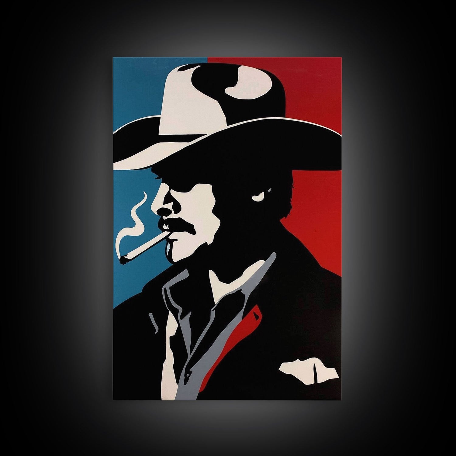 Cowboy and Cowgirl Embracing in Scenic Western Landscape - Framed Canvas Print, Rustic Western Decor, Bedroom Art, Romantic Wall Art