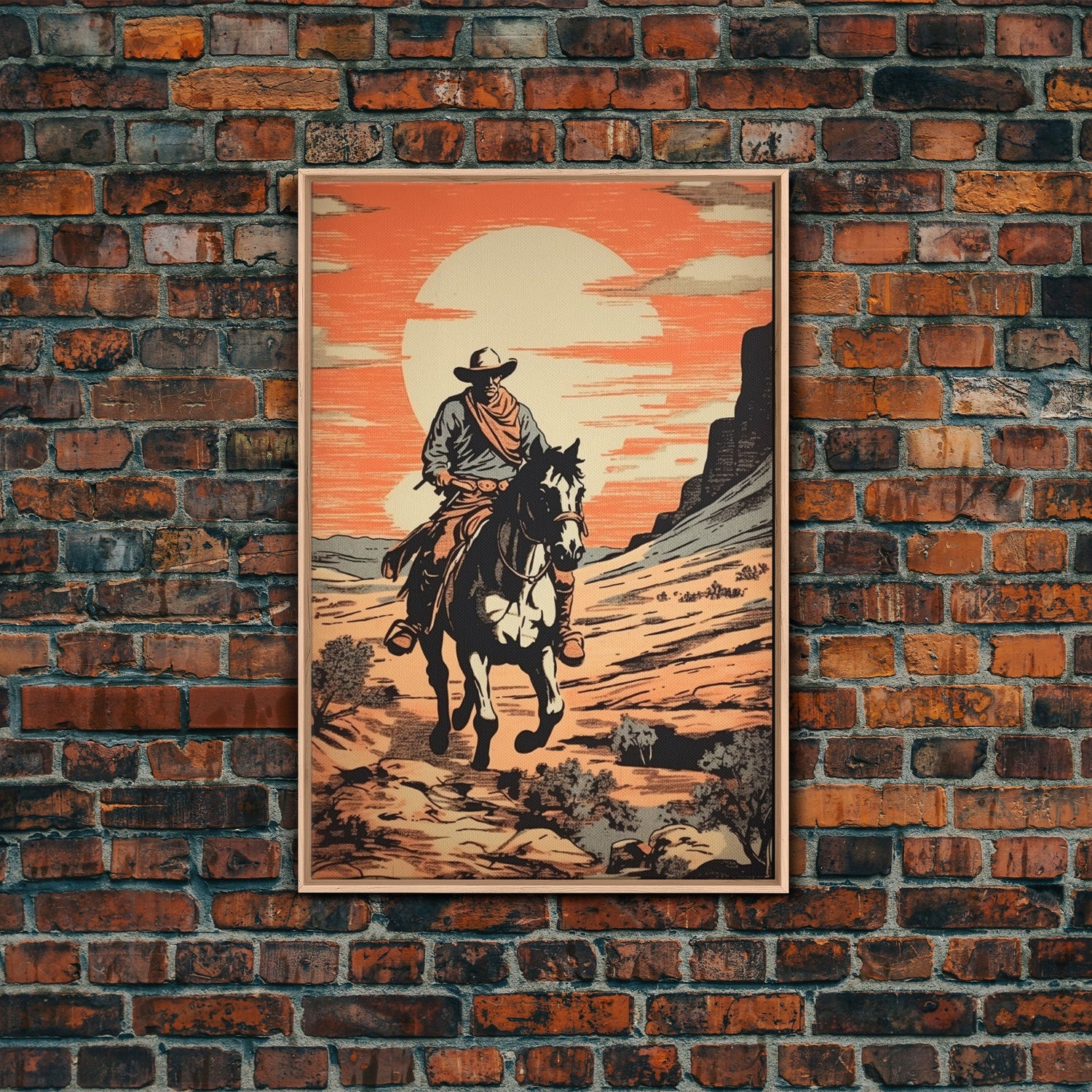 Cowboy Wall Decor, 12x18 Art Print, Equestrian Wall Art, Western Decor, Southwestern Art, Wild West Painting Wall Art, Framed Canvas Print