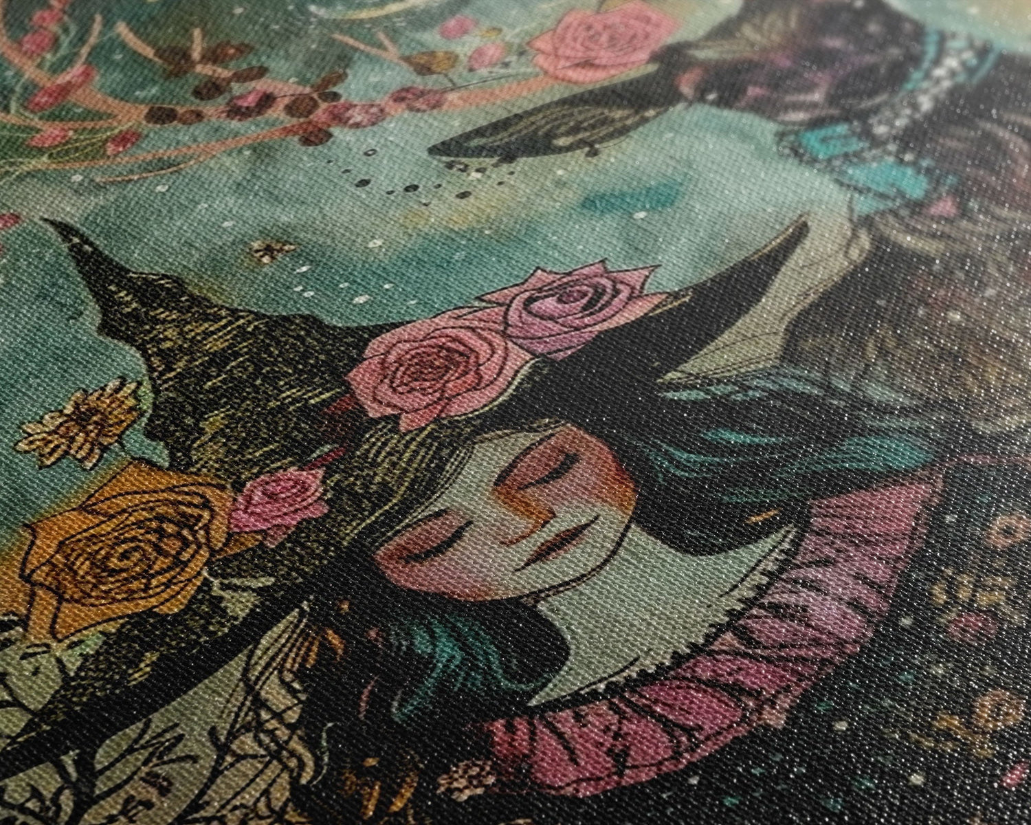 Elegant Witch with Tortoise - Halloween Art, Gothic Art, Spooky Decor, Dark Nature Art, Haunting Portrait, Framed Canvas Print