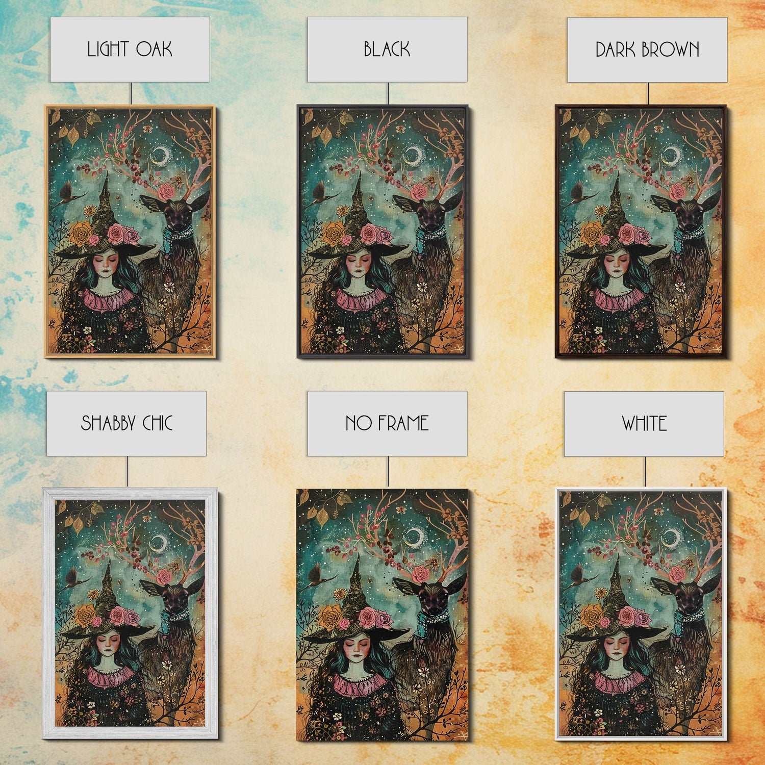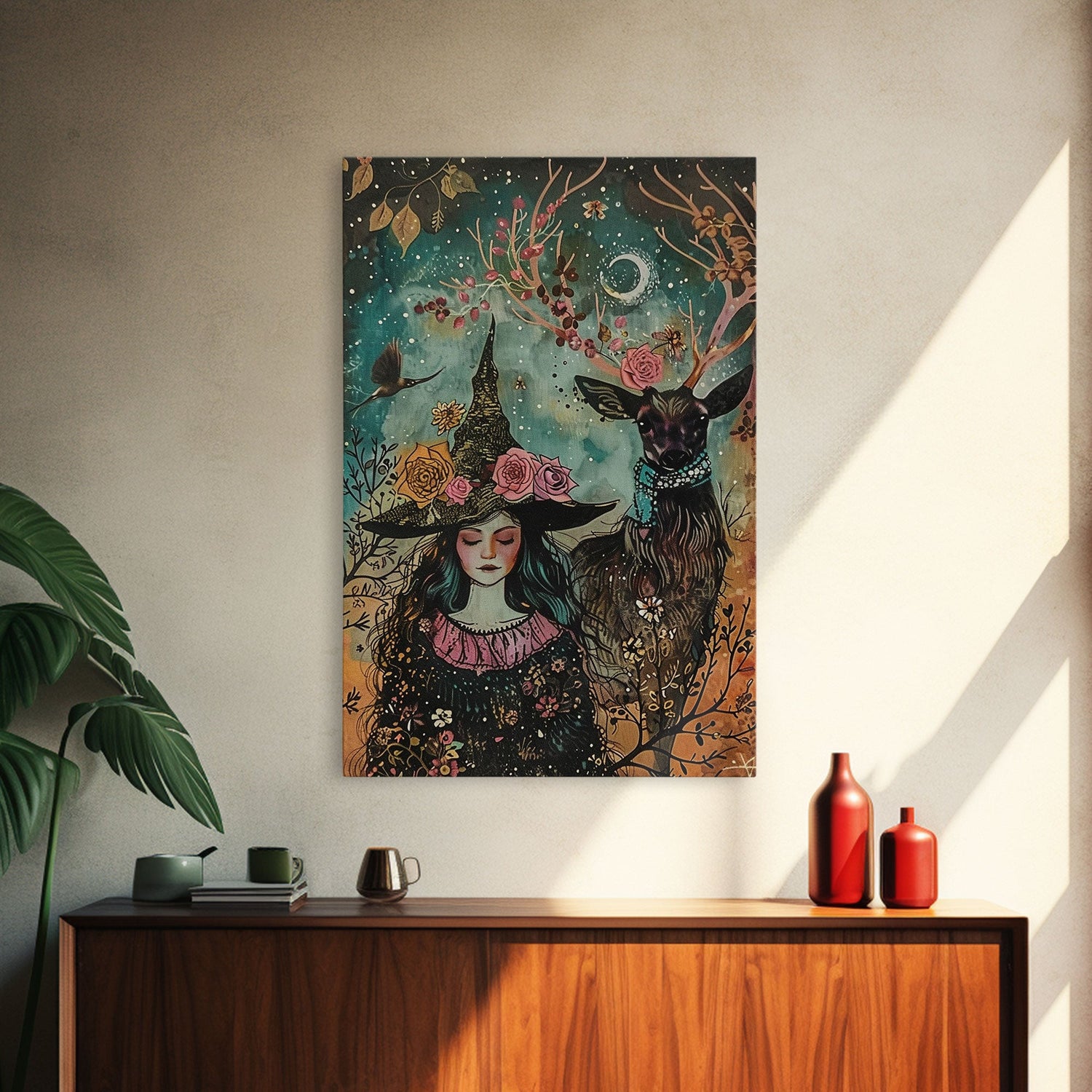 Elegant Witch with Tortoise - Halloween Art, Gothic Art, Spooky Decor, Dark Nature Art, Haunting Portrait, Framed Canvas Print - 8x12 Inches / Gallery Wrap Canvas - Ready To Hang is backordered and will ship as soon as it is back in stock.