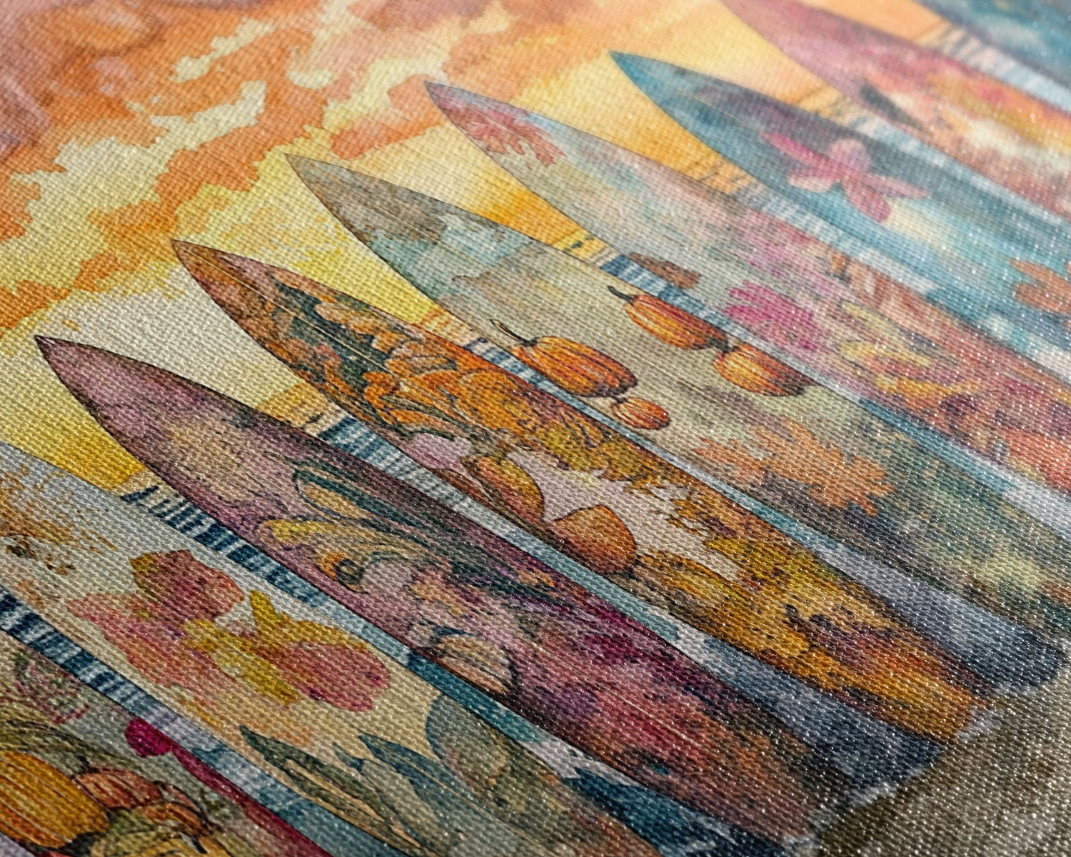Fall Surfboards Beach Art Print Canvas Wall Art Autumn Surfboard Beach Scene Seasonal Wall Art Framed Canvas Print Fall Beach Decor - 10x20 Inches / Gallery Wrap Canvas - Ready To Hang is backordered and will ship as soon as it is back in stock.