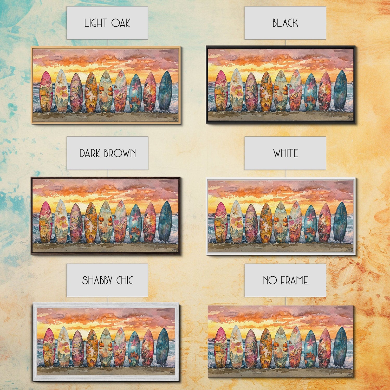 Fall Surfboards Beach Art Print Canvas Wall Art Autumn Surfboard Beach Scene Seasonal Wall Art Framed Canvas Print Fall Beach Decor