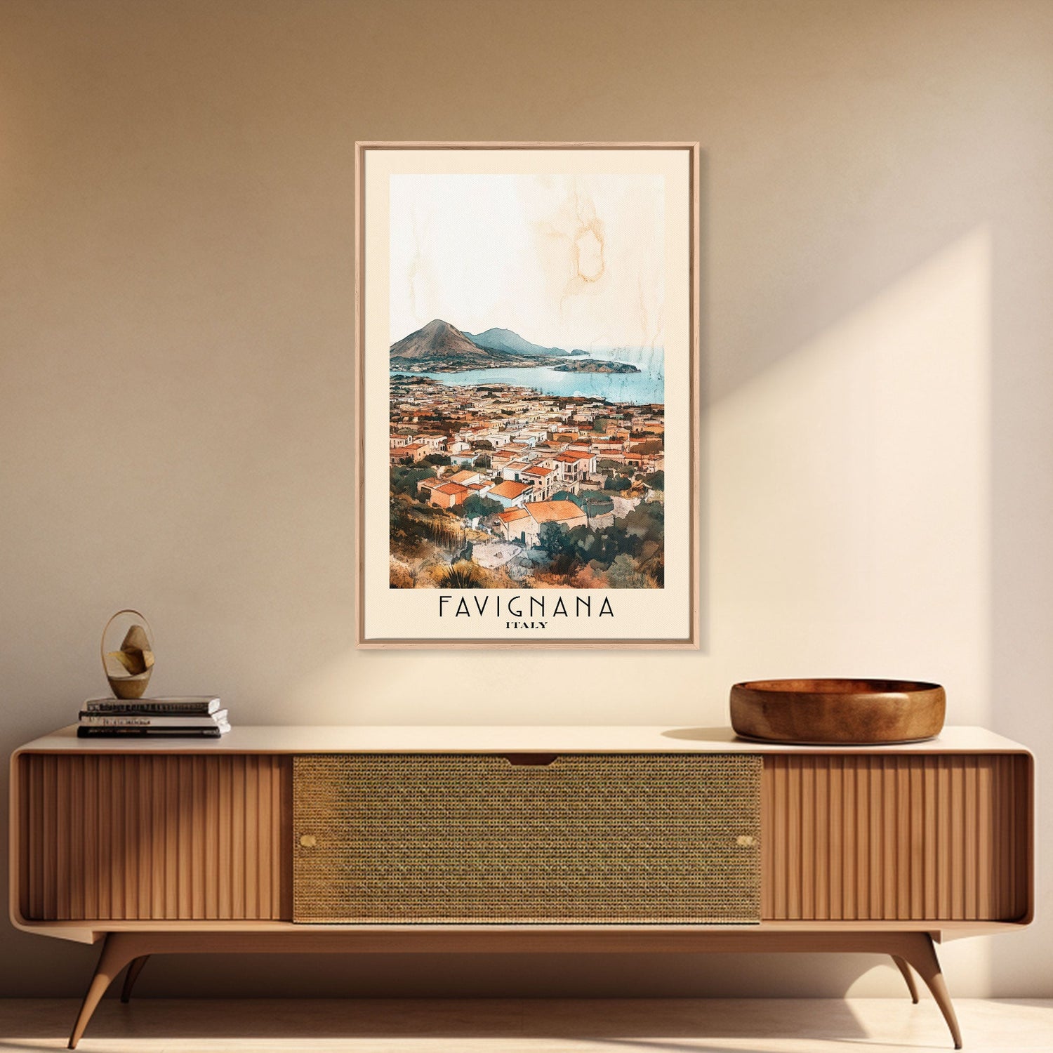 Favignana, Italy Watercolor Beach Print, Vacation Gift, Italy Wall Art, Framed Canvas Print, Framed Beach Painting
