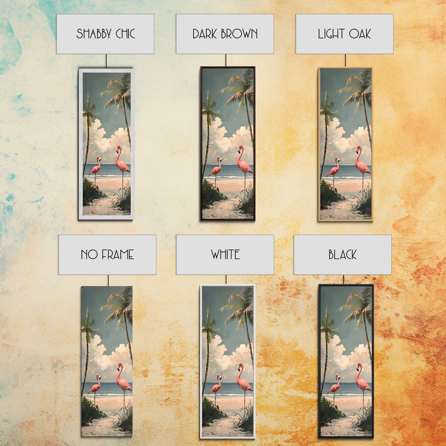 Flamingos on Beach, Coastal Art Framed and Printed on Canvas, Modern Beach House Wall Art Print, Housewarming Gift for Her, Beach Print