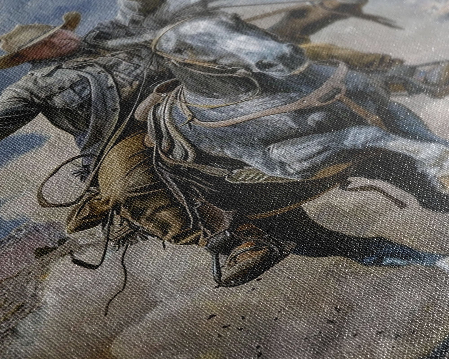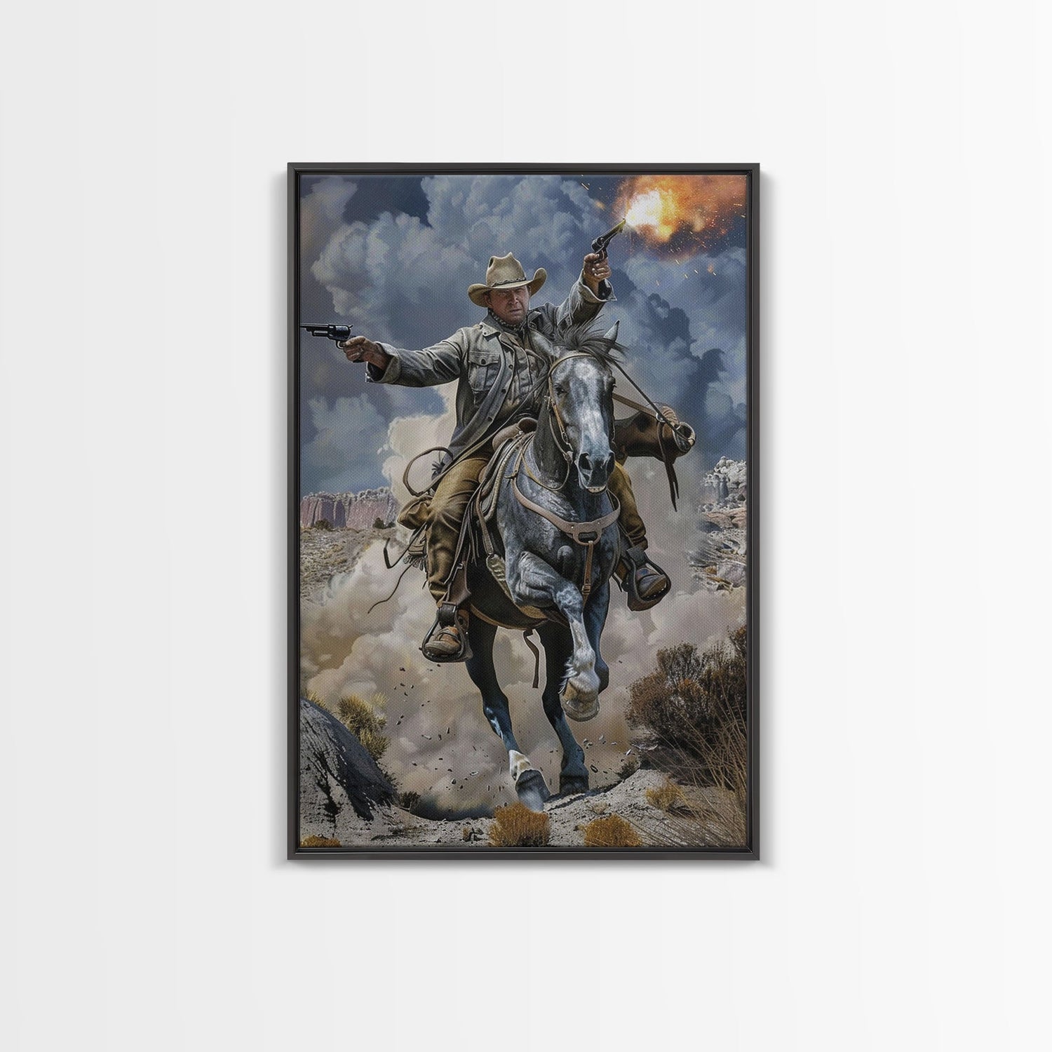 Framed Canvas Print, Dynamic Cowboy Shooting Pistols Wall Art, Western Decor for Living Room or Bedroom, Exciting Wall Art, Home Decoration