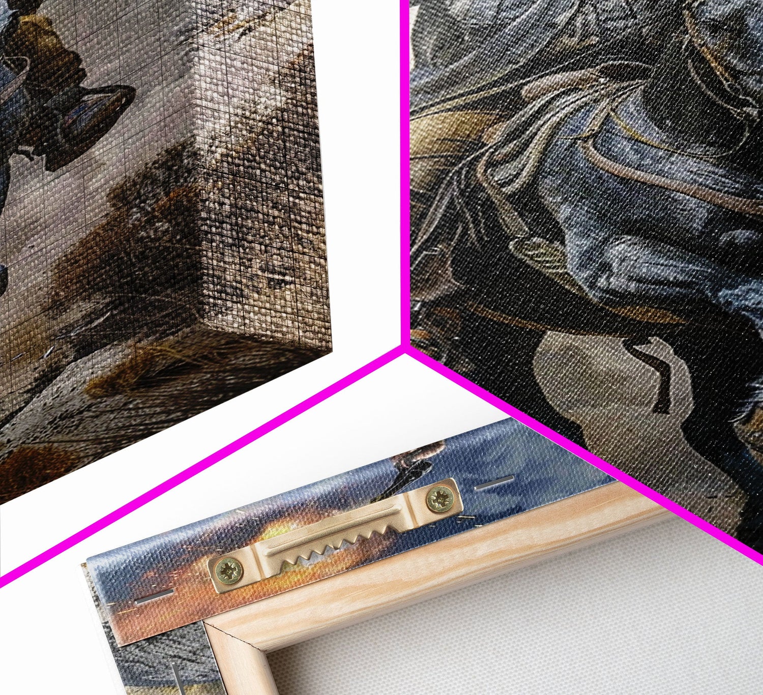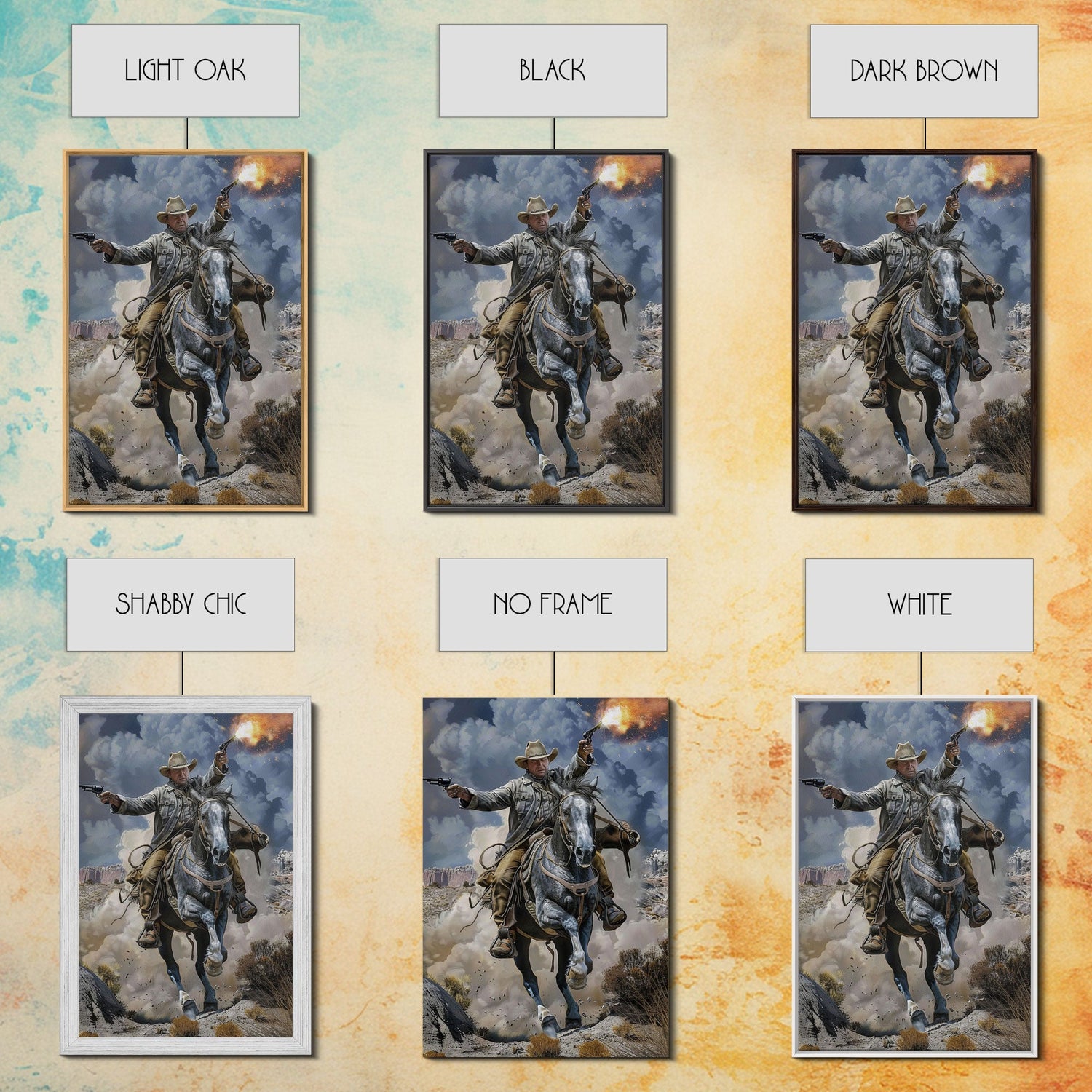 Framed Canvas Print, Dynamic Cowboy Shooting Pistols Wall Art, Western Decor for Living Room or Bedroom, Exciting Wall Art, Home Decoration - 8x12 Inches / Gallery Wrap Canvas - Ready To Hang is backordered and will ship as soon as it is back in stock.