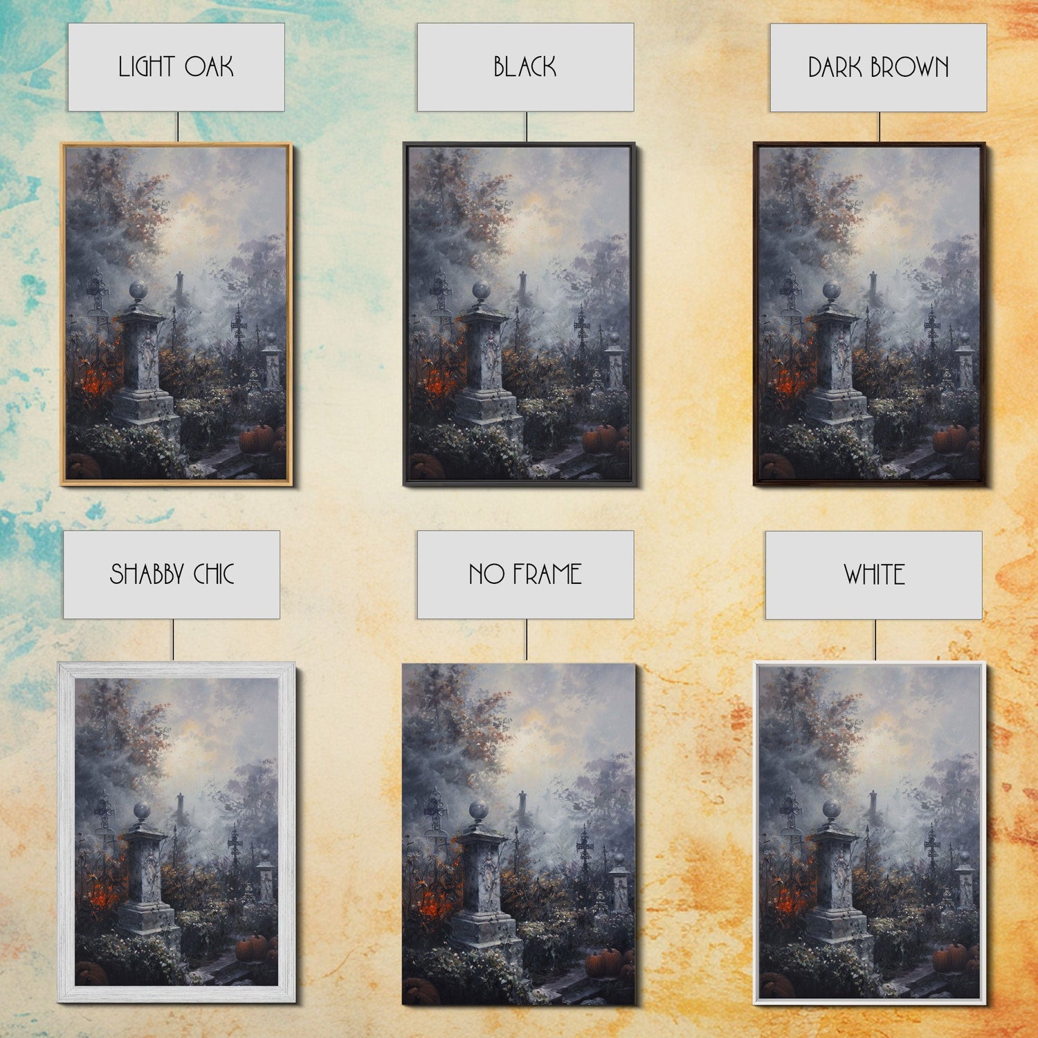 Gothic Cemetery with Statues Framed Canvas Print, Halloween Wall Art, Haunted Graveyard, Home Decor, Spooky Art, Living Room Decor, Gothic - 8x12 Inches / Gallery Wrap Canvas - Ready To Hang is backordered and will ship as soon as it is back in stock.
