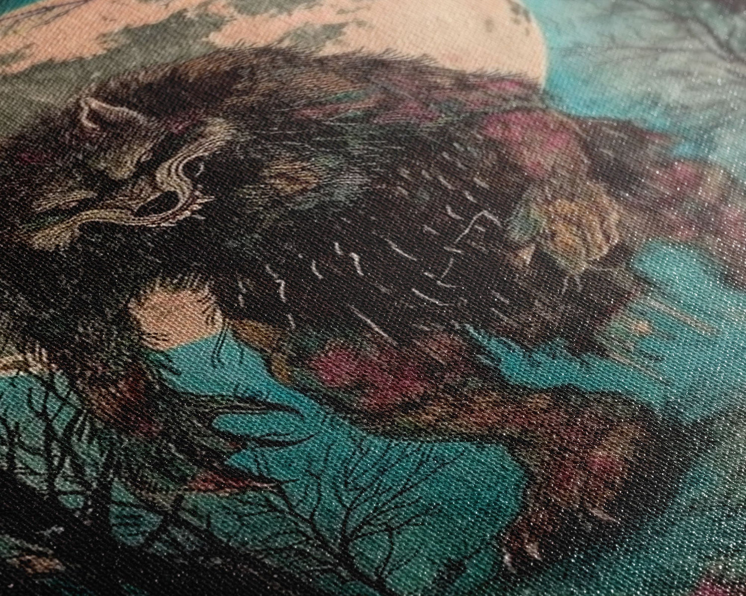 Halloween Horror Full Moon Werewolf Framed Canvas Print, Wall Art, Living Room Decor, Halloween Decor, Spooky Wall Hanging, Haunted House