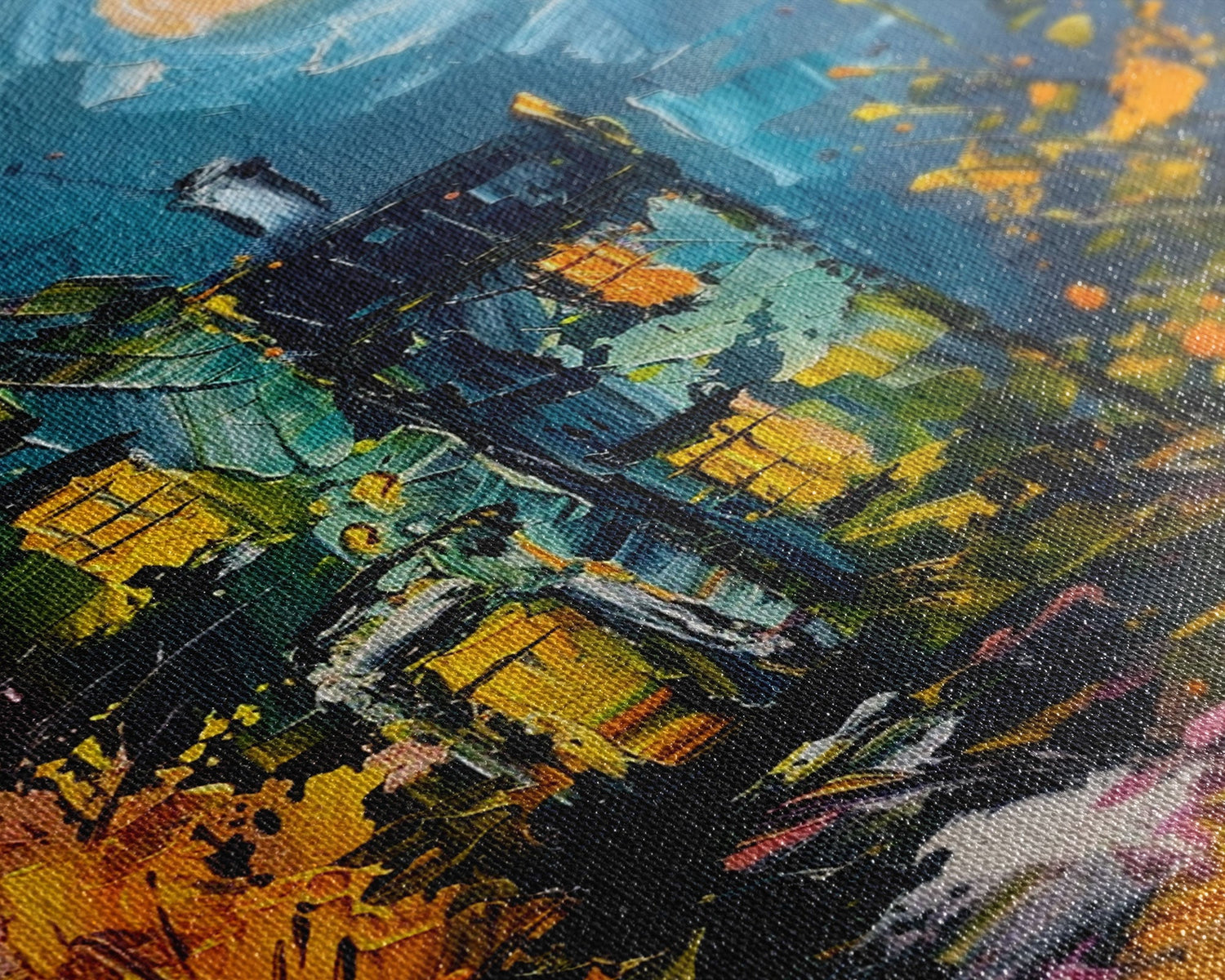 Most of our canvases are made in the USA, with the exception of canvases ordered with the light oak unstained frames, and any large canvases (24x48, 30x60, 16x48 and 20x60) ordered WITH a frame. These are temporarily made in and shipped from Europe, while we try to find a more consistent supplier in the USA.