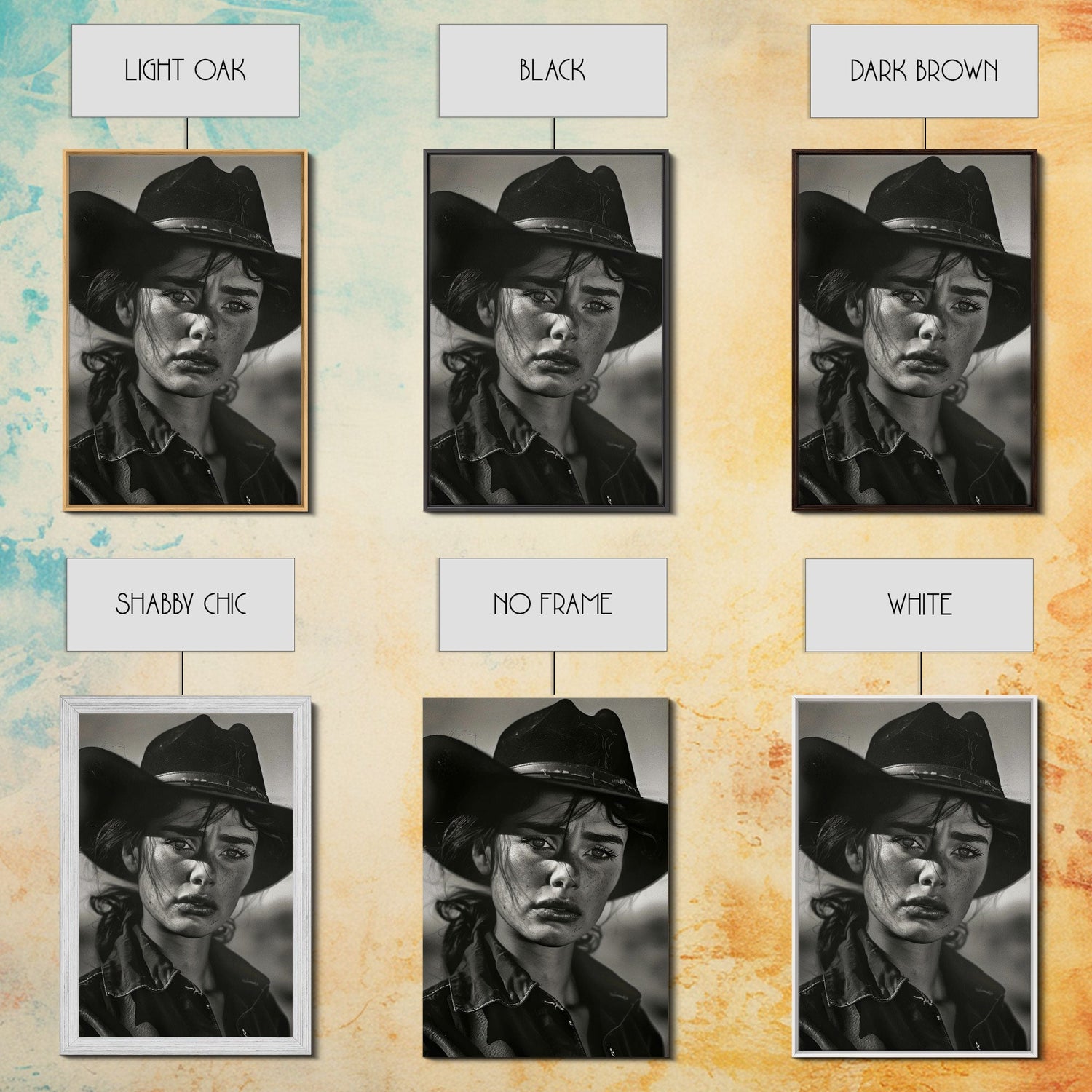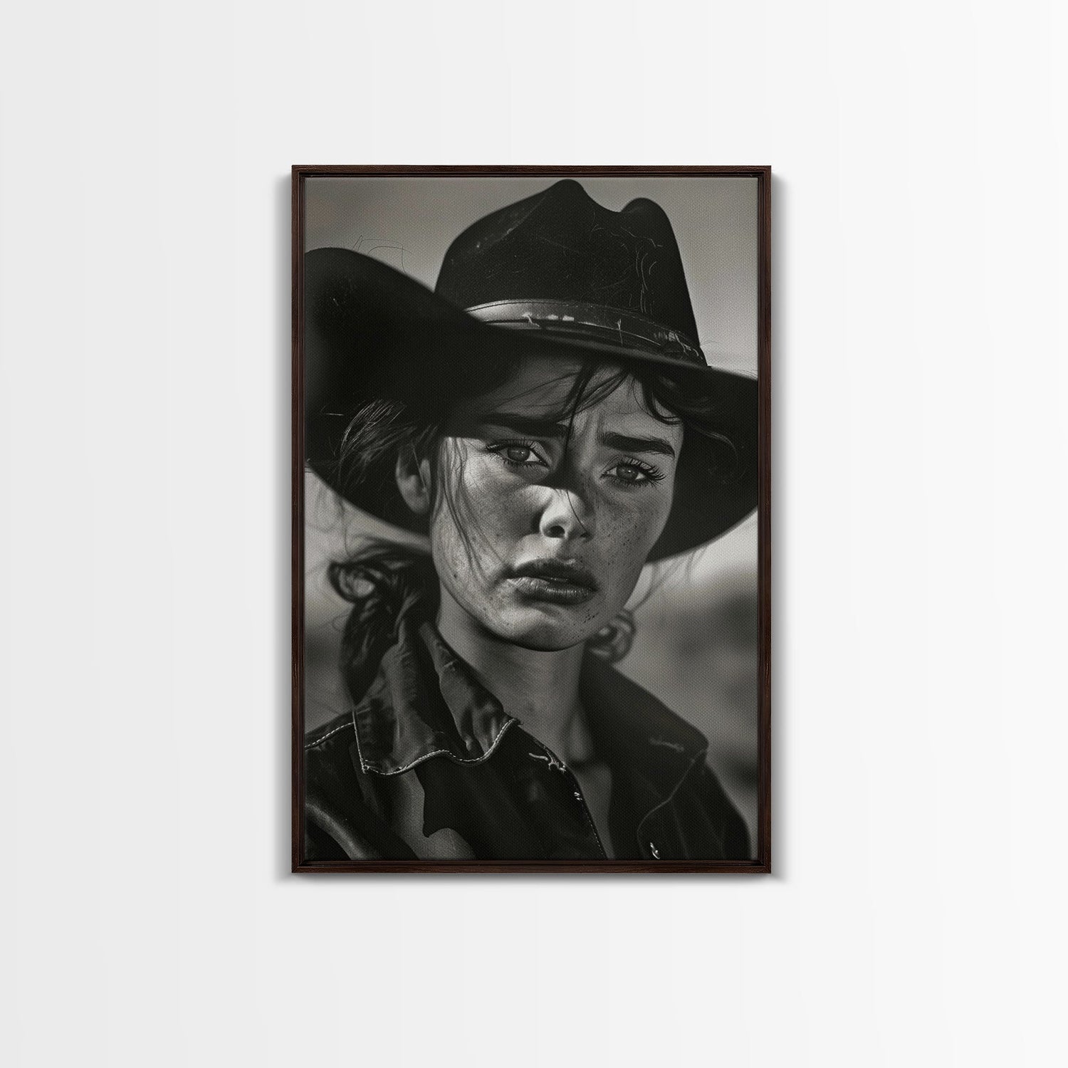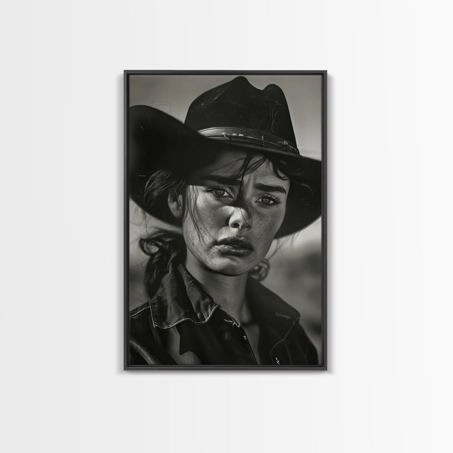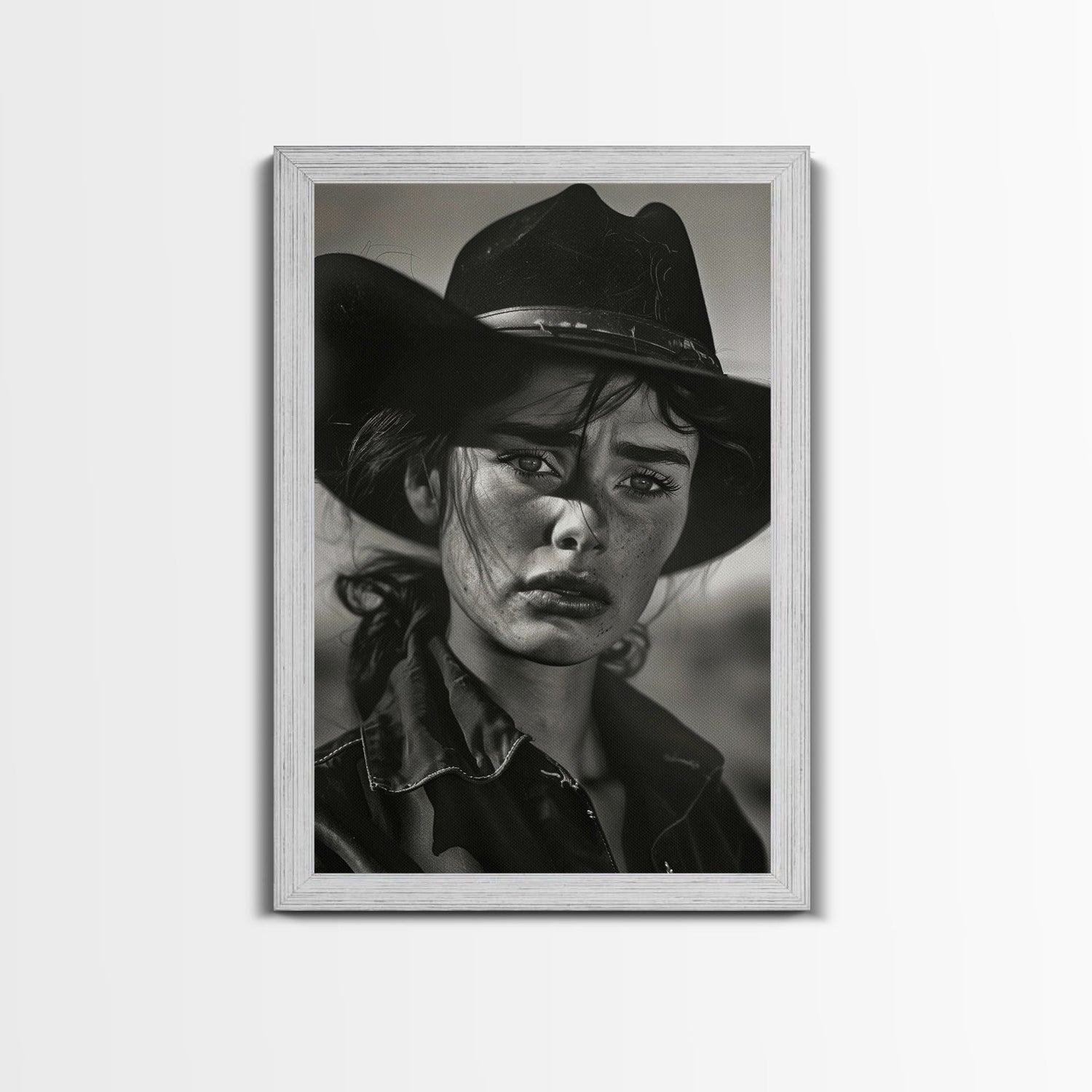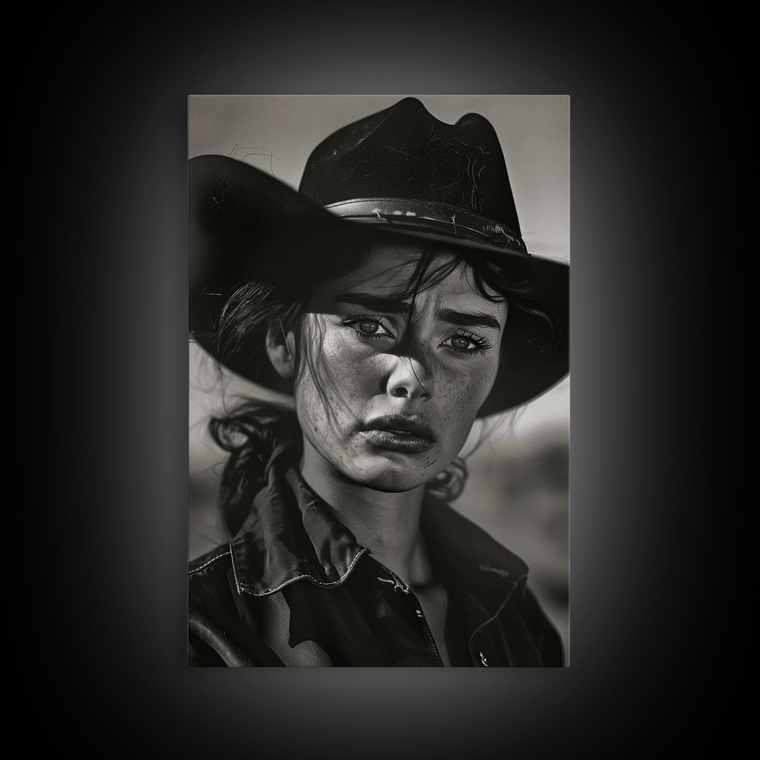 Intense Black and White Portrait of a Female Cowboy for Western Wall Art, Canvas Prints, Rustic Home Decor, Living Room Art, Bedroom Art