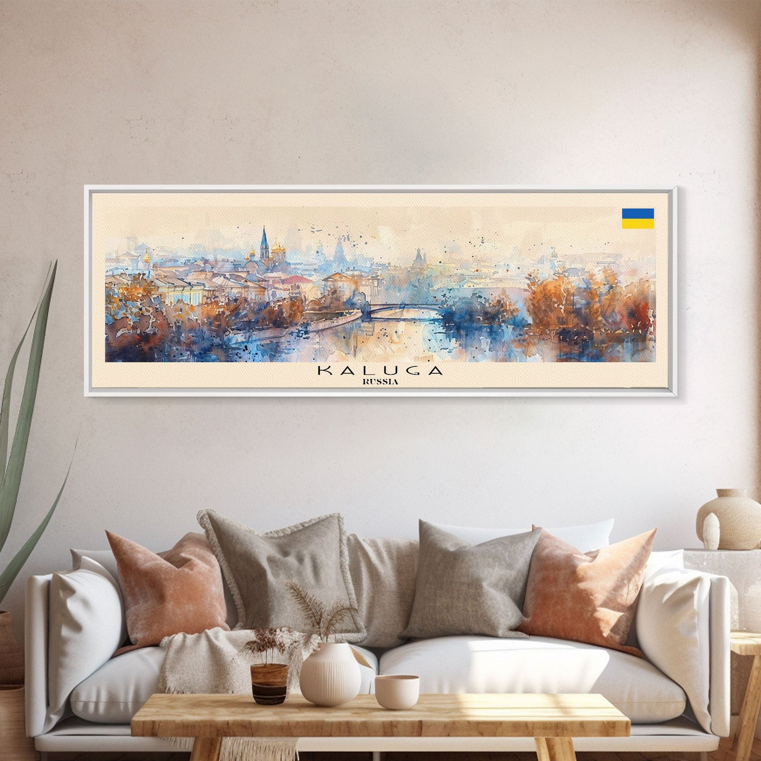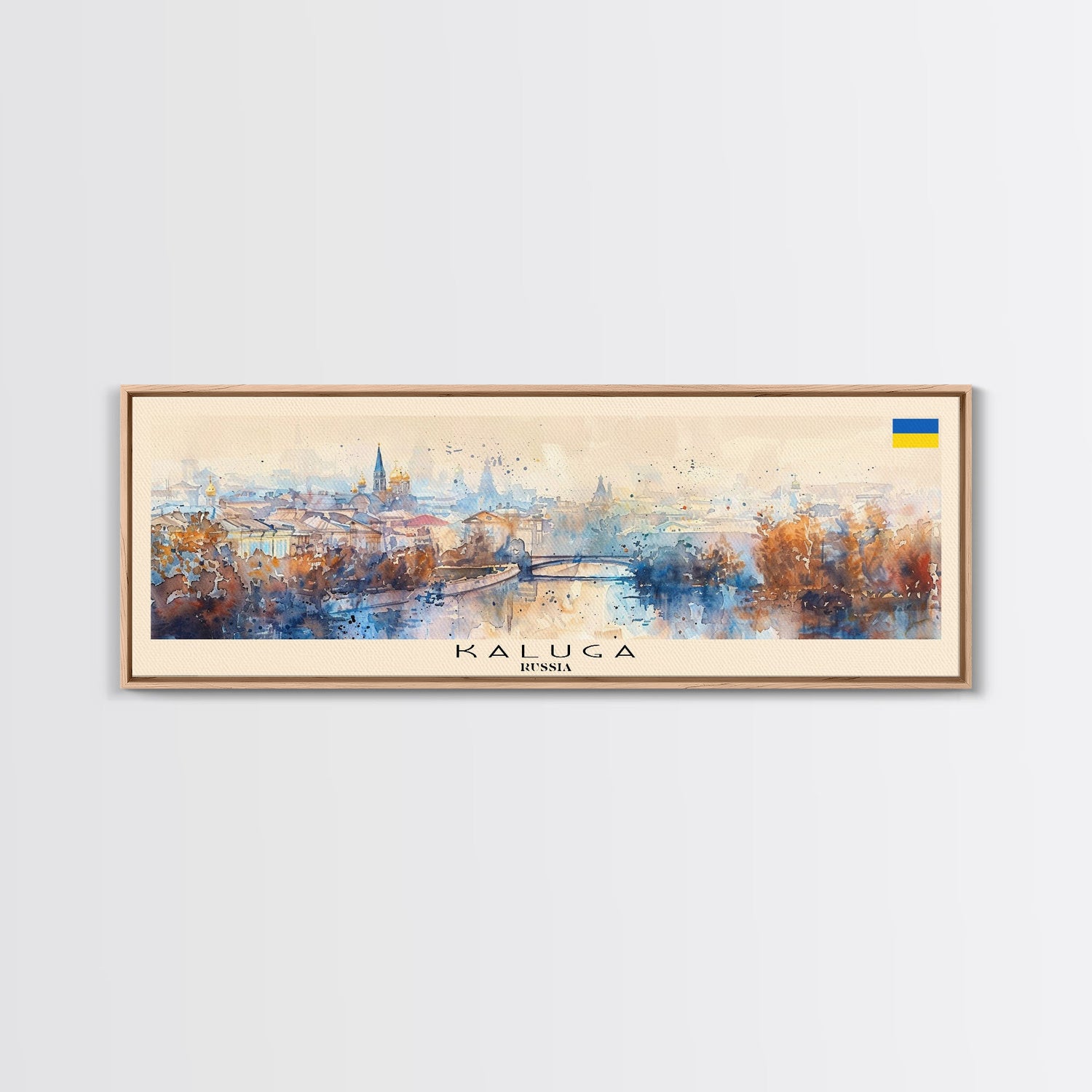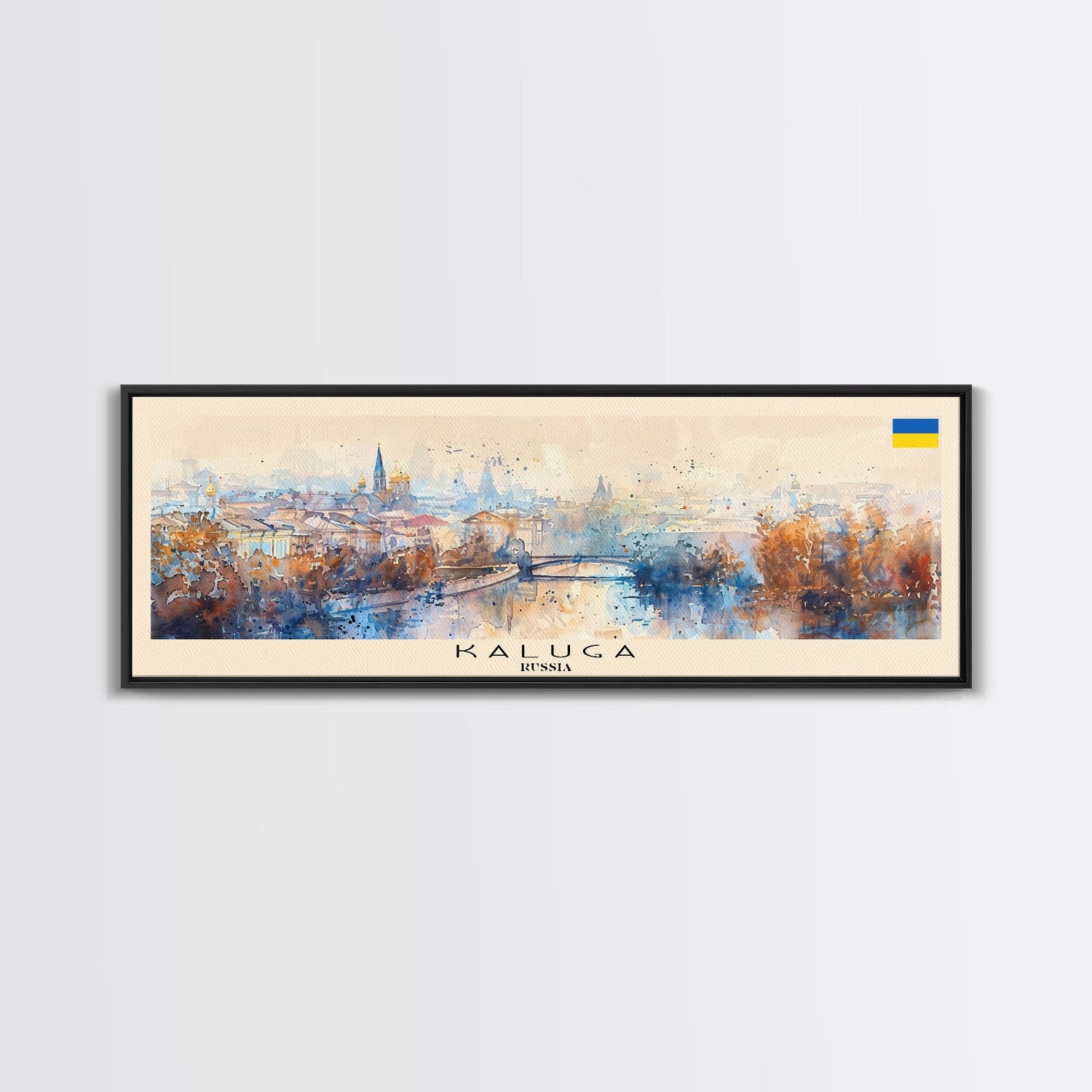 Kaluga Russia Panoramic Travel Poster, Framed Canvas Print or Metal Wall Art, Travel Art, Home Decor, Panoramic Painting, Midcentury Art - 10x30 Inches / Gallery Wrap Canvas - Ready To Hang is backordered and will ship as soon as it is back in stock.