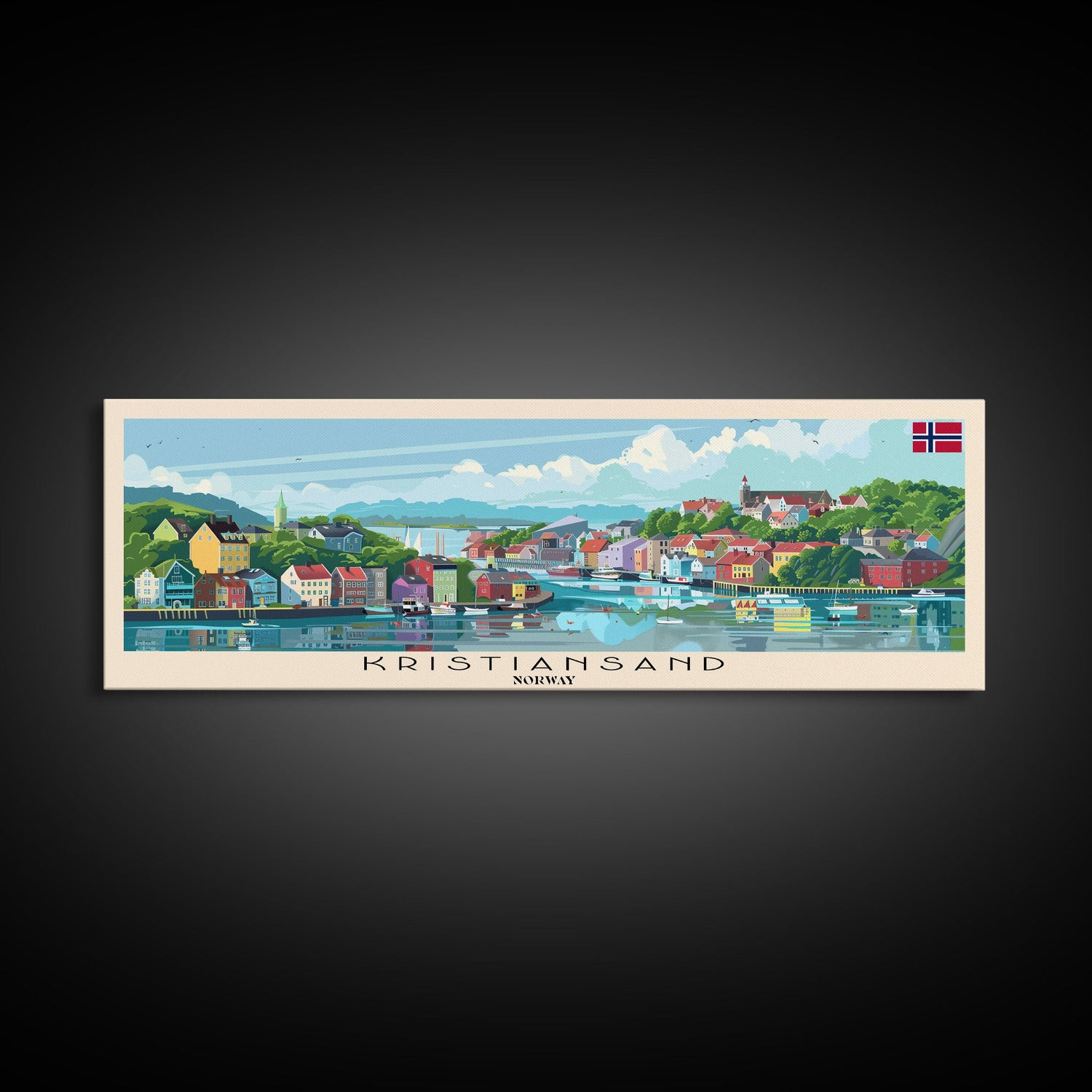 Kristiansand Norway Wall Art, Panoramic Travel Poster, Panoramic Framed Canvas Print, City Wall Art, Wall Hanging Home Decor, Travel Art