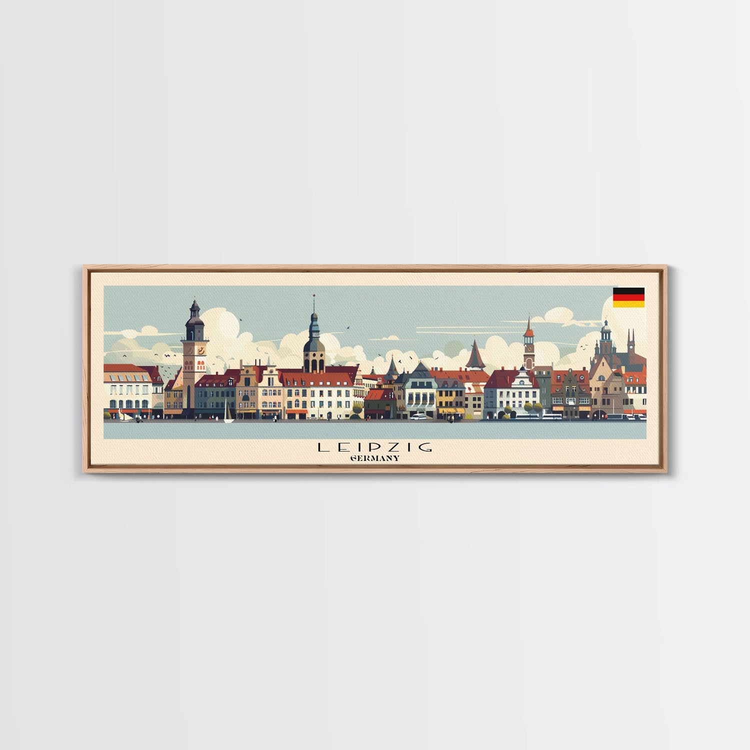 Leipzig Germany Panoramic Travel Poster, Framed Canvas Print or Metal Wall Art, Travel Art, Home Decor, Panoramic Painting, Midcentury Art