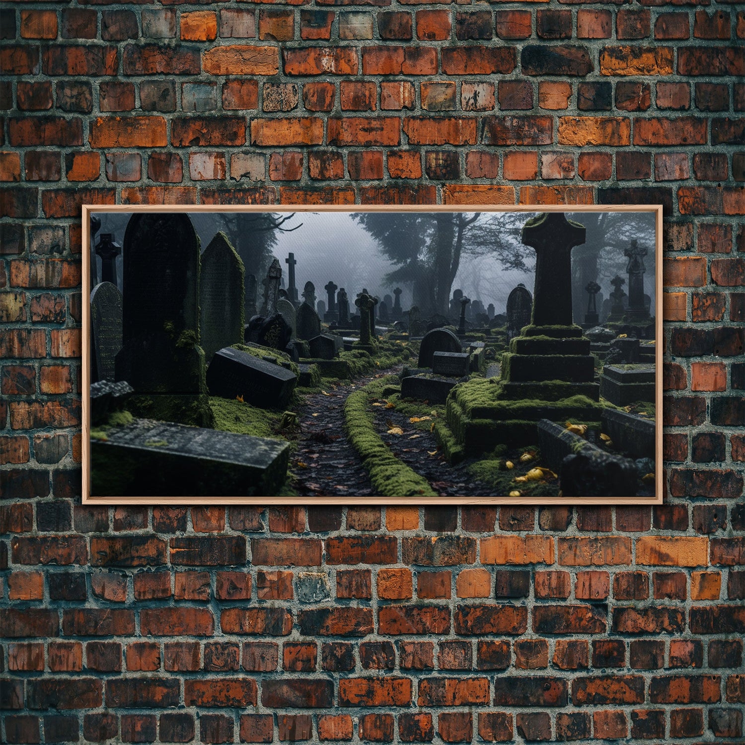 Moss Covered Cemetary, Haunted Graveyard Photography, Halloween Decor, Framed Canvas Print, Halloween Wall Art