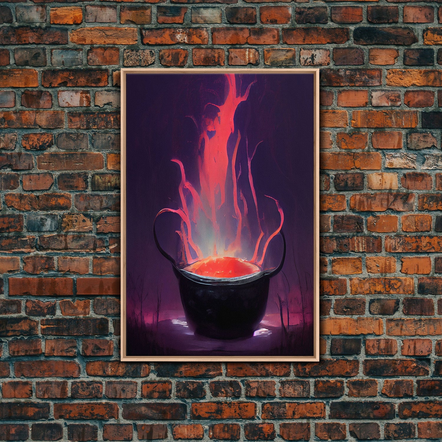 Spooky Witch's Cauldron Canvas Print, Halloween wall art, spooky home decor
