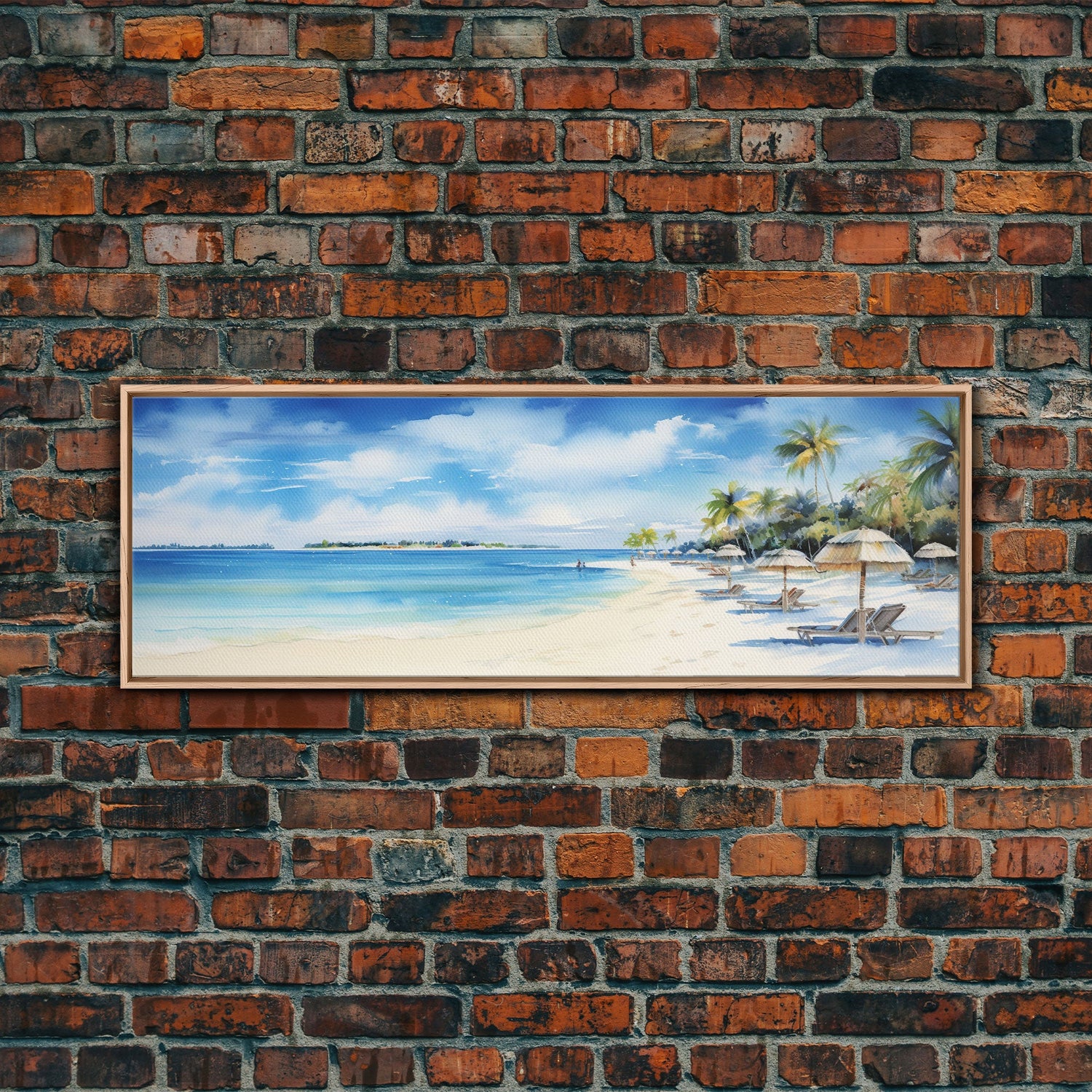 The Joy Of The Beach, Framed Canvas Print, Handmade Wall Art, Extra Large Minimalist Swimming Decor, Abstract Oil Painting, Panoramic Art - 10x30 Inches / Gallery Wrap Canvas - Ready To Hang is backordered and will ship as soon as it is back in stock.