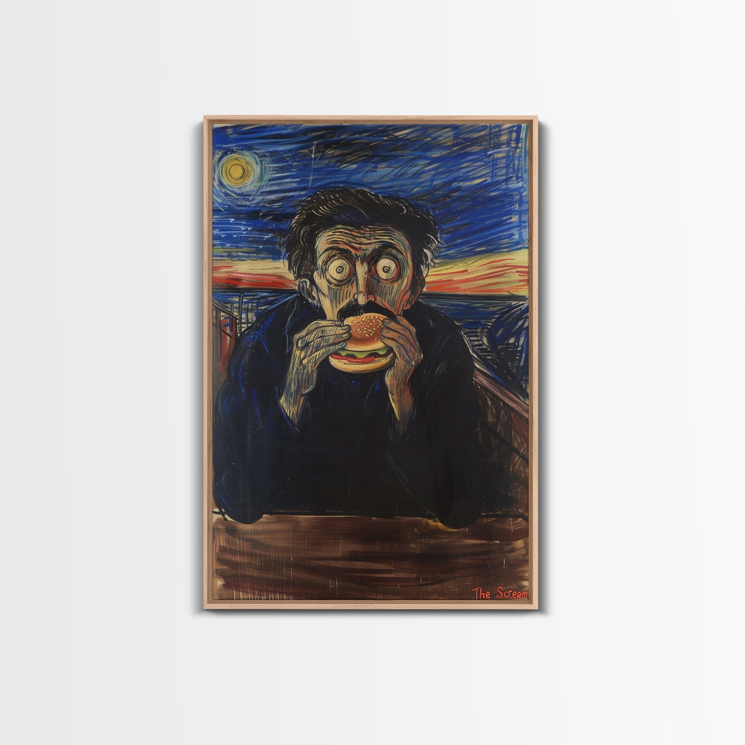 The Scream But With A Hamburger Halloween Artwork, Perfect for Adding a Touch of Spooky Humor to Your Wall Decor