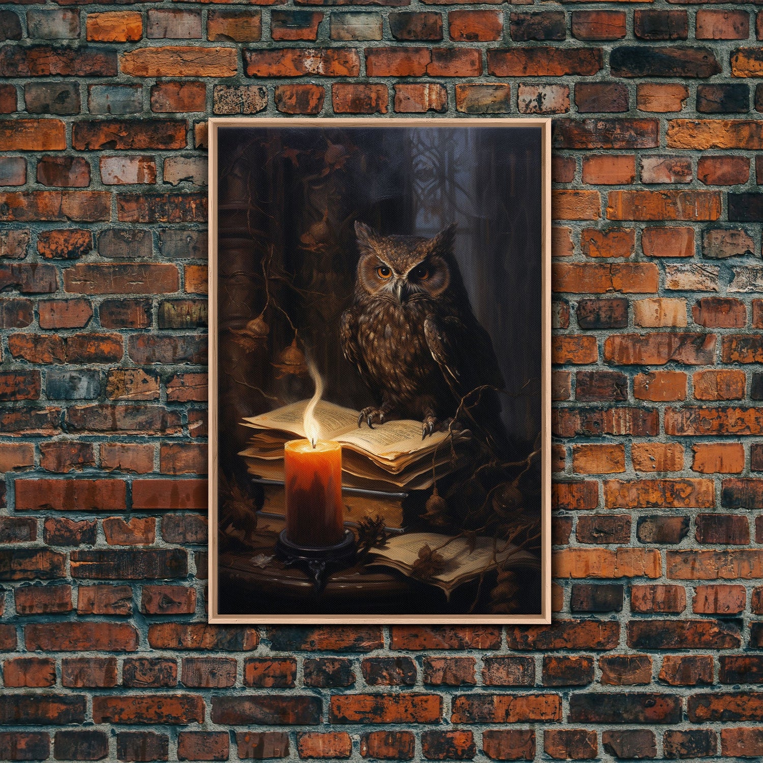 The Witch's Familiar, Framed Canvas Print, Halloween Decor, Halloween Canvas Art, Victorian Owl Oil Painting