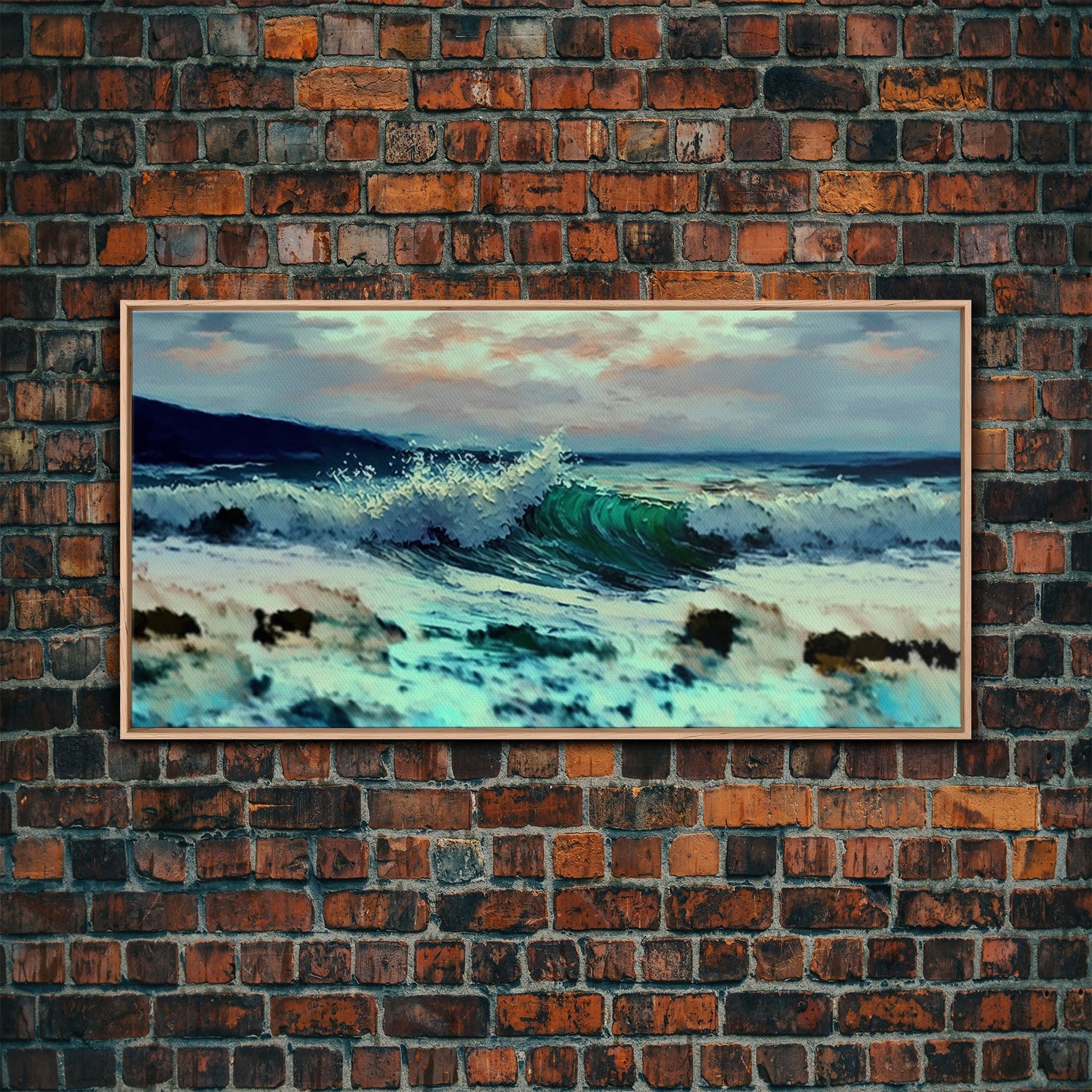 Wave, Ocean Wall Art, Impressionist Oil Painting On Canvas, Ready To Hang Large Landscape Canvas Wall Art Print With Or Without Wood Frame - 10x20 Inches / Gallery Wrap Canvas - Ready To Hang is backordered and will ship as soon as it is back in stock.