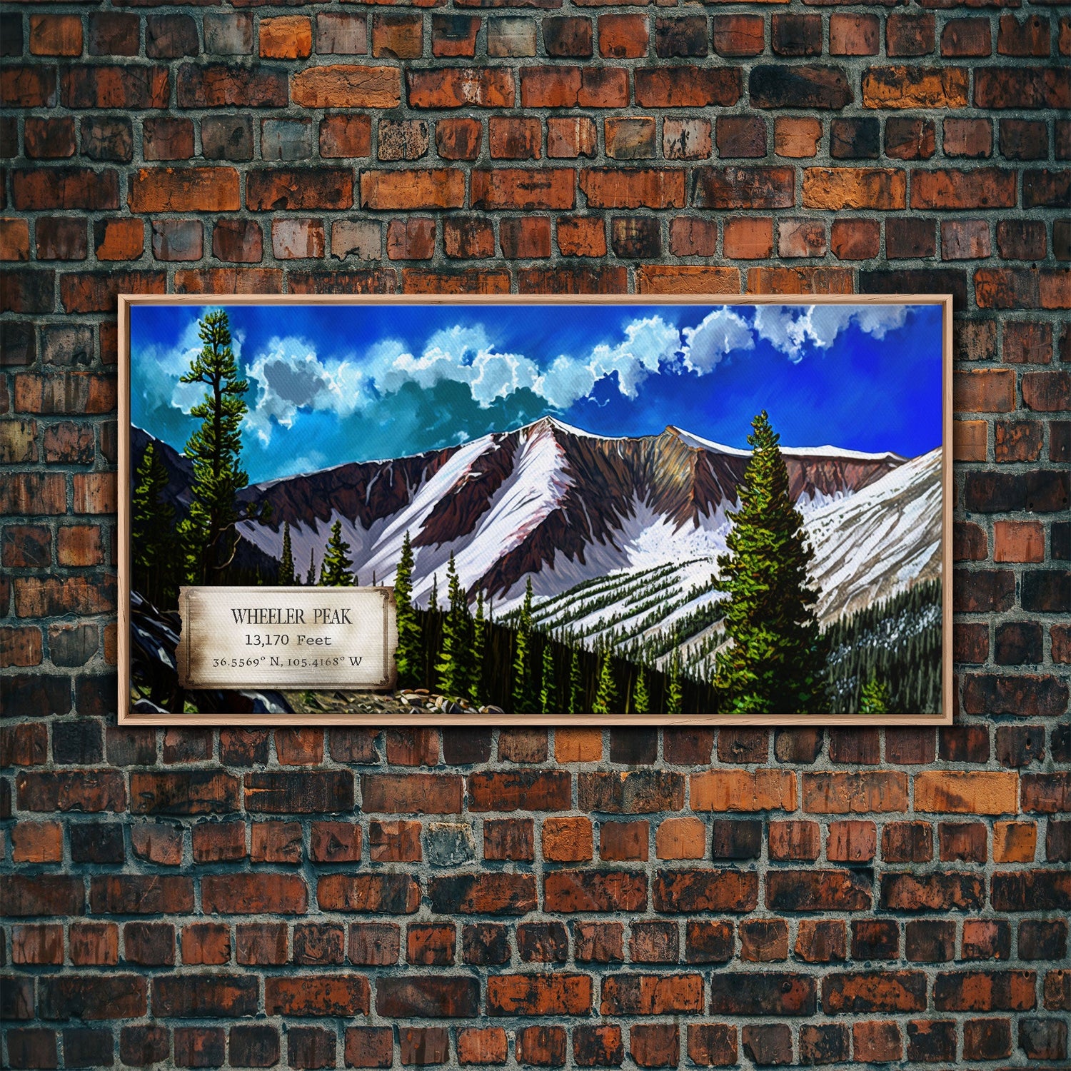 Wheeler Peak, Travel Poster Wall Art, Framed Canvas Print, American Mountains, Mountain Landscape Painting, Mountains of New Mexico - 10x20 Inches / Gallery Wrap Canvas - Ready To Hang is backordered and will ship as soon as it is back in stock.