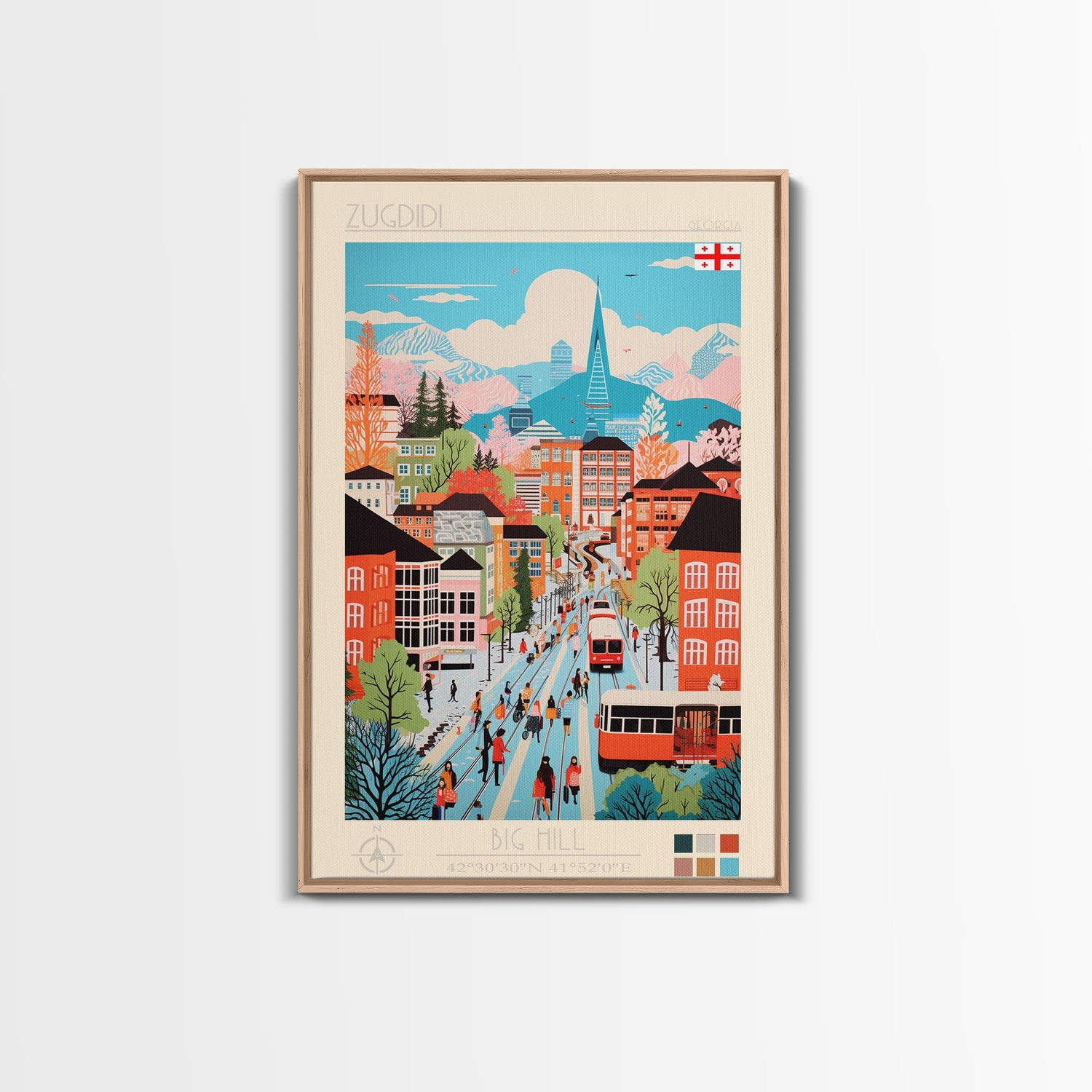 Zugdidi Georgia Travel Poster Framed Canvas Print, Midcentury Modern Art, Pop Art Wall Decor, Living Room Art, Vacation Gift