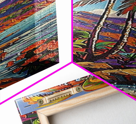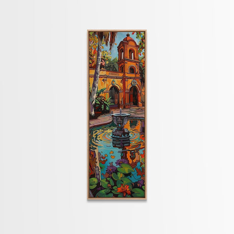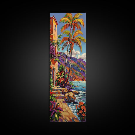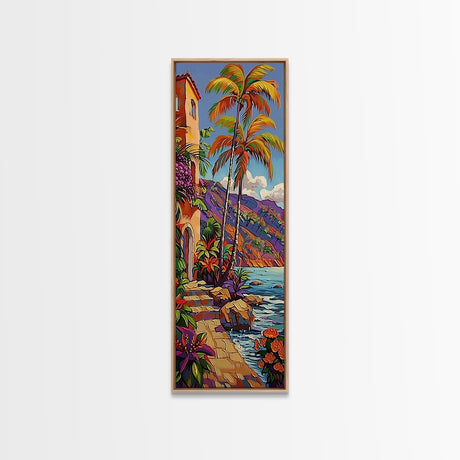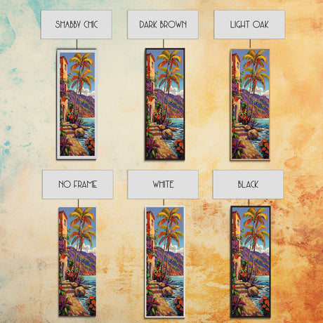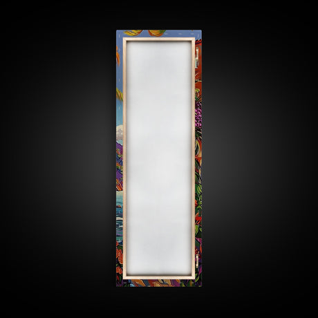 Abstract Rainbow and Waterfall Framed Canvas Print - Tall Skinny Japanese Style Wall Art