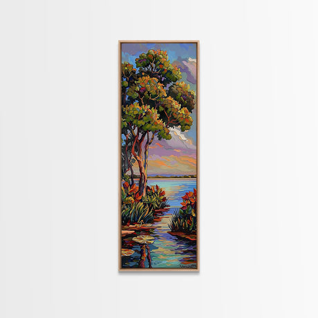 Serene Coastal Sunset Warm Ocean Minimalist Wall Art Framed Canvas Print Tall Art Japanese Style Art