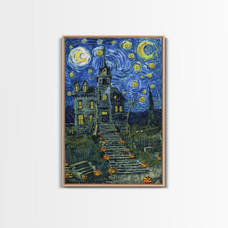 Starry Night Inspired Haunted Cemetary, Halloween Decor / Hallowen Wall Art / Halloween Props
