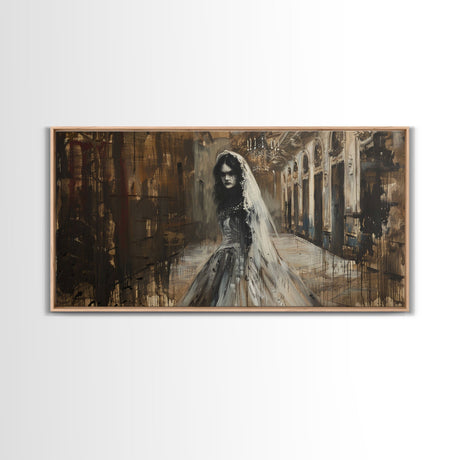 Ghostly Bride, Haunted Wedding, Framed Canvas Print, Spooky Wall Art, Halloween Decor