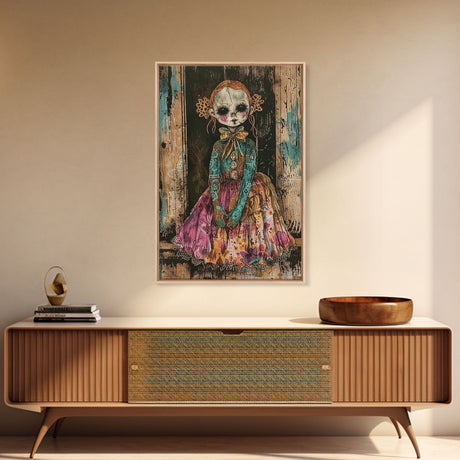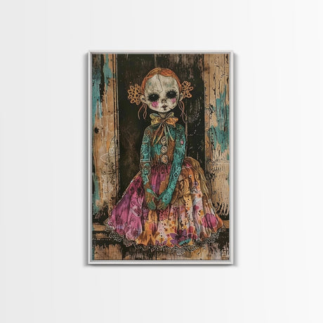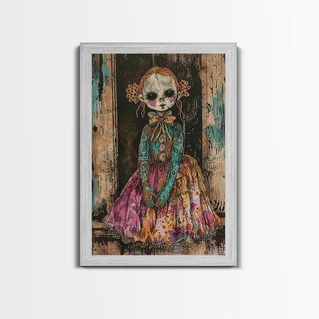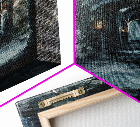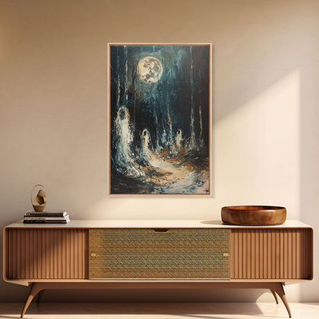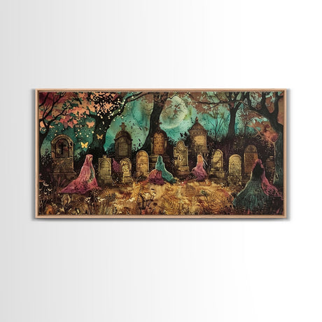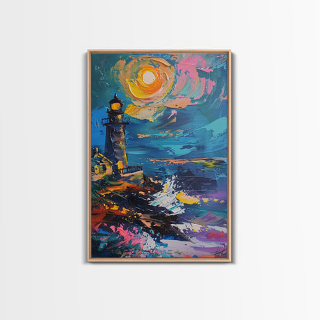 The Haunted Light House Framed Canvas Print, Retro Style Halloween Decor, Cottage Core Halloween Art