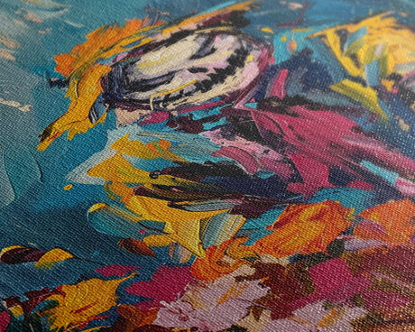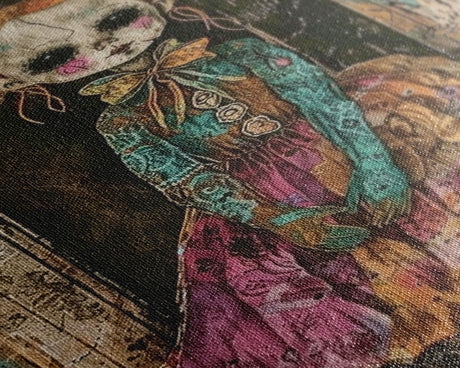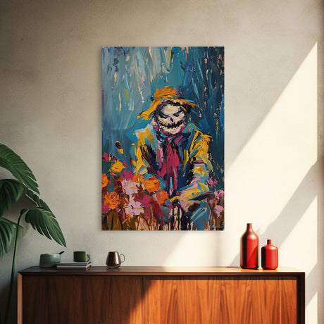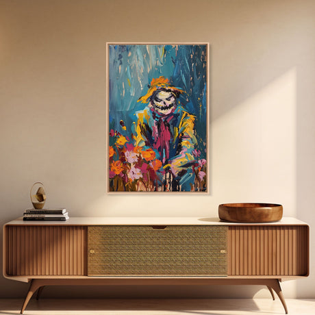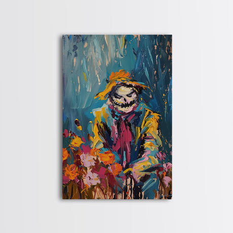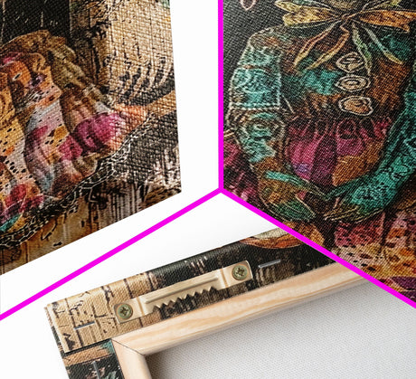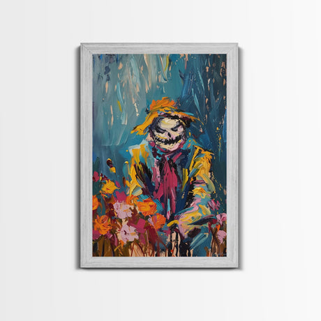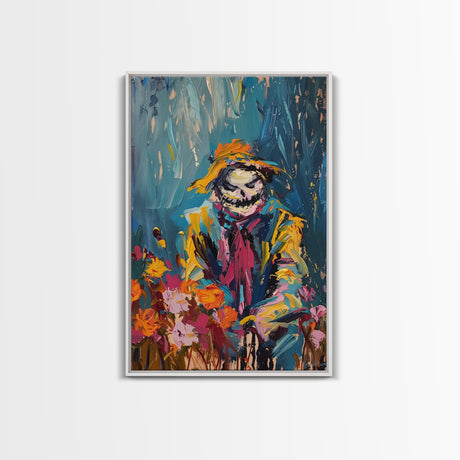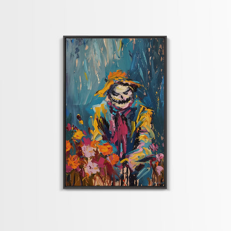 Spooky Skeleton Dude Eatin' a Pizza, Starry Night Inspired Funny Halloween Art, Framed Canvas Print