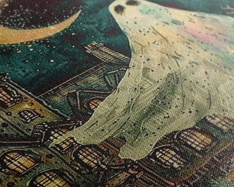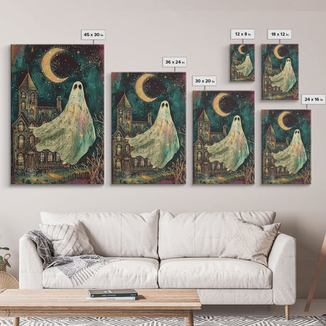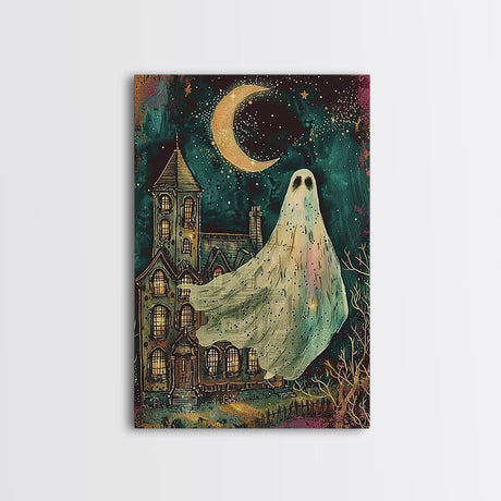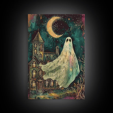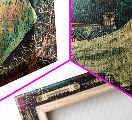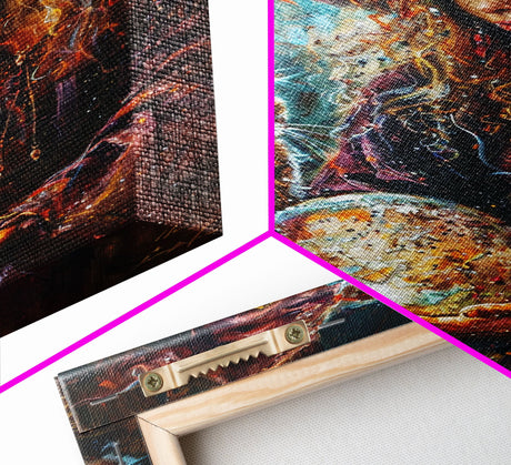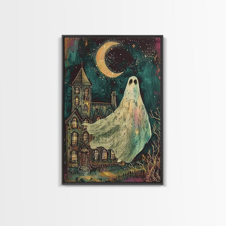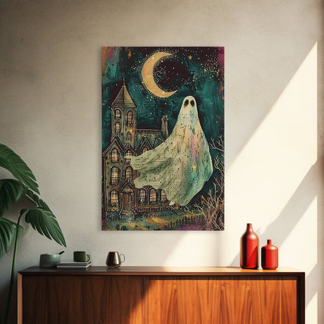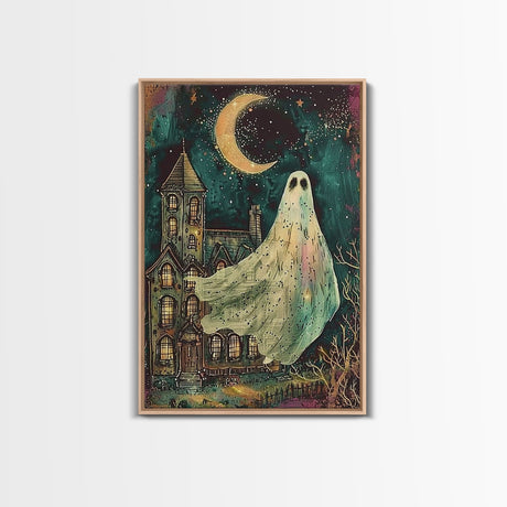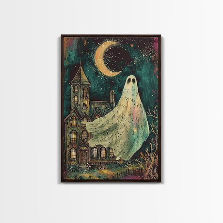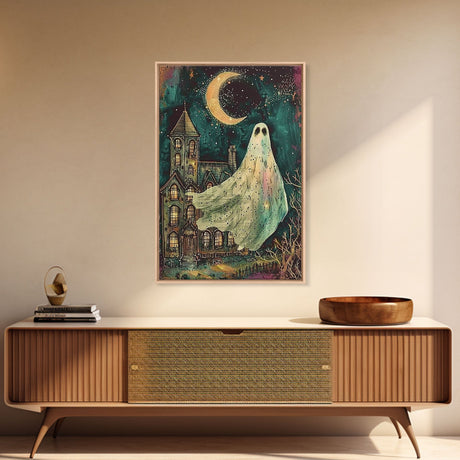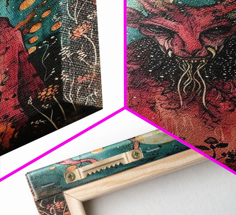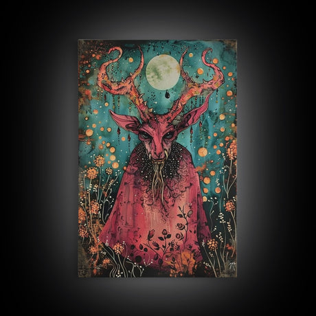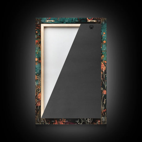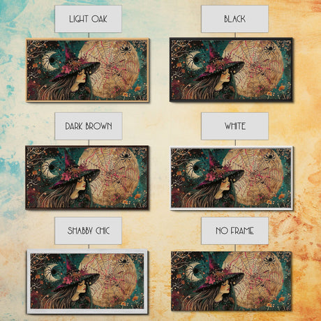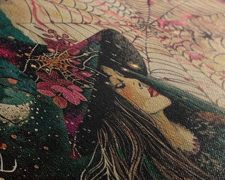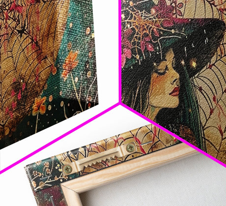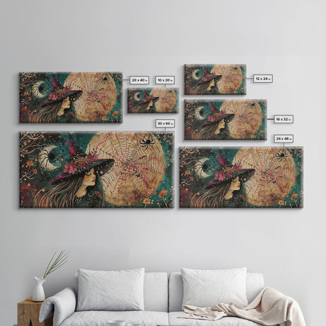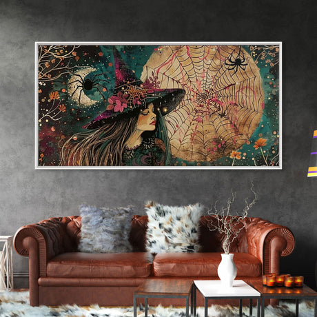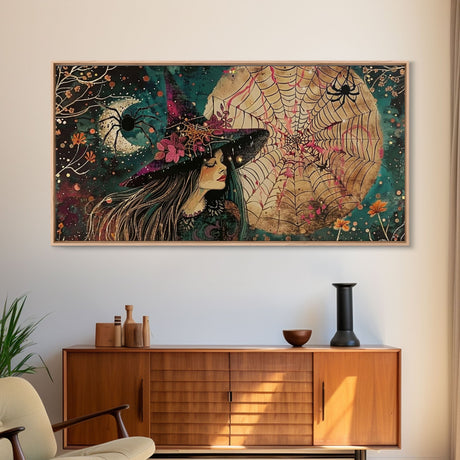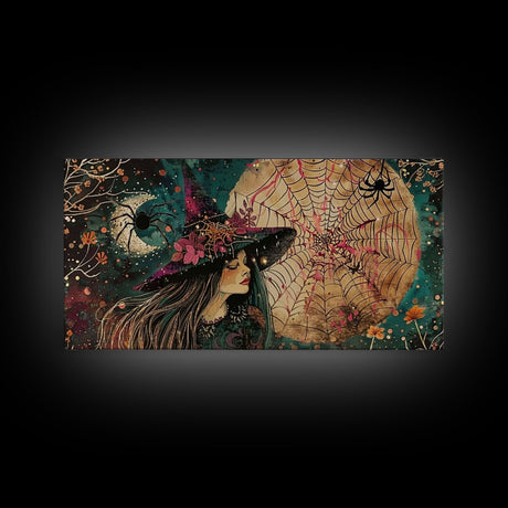 Spring Witch and Her Slice Of Pizza, Framed Canvas Print, Cute / Funny Halloween Art