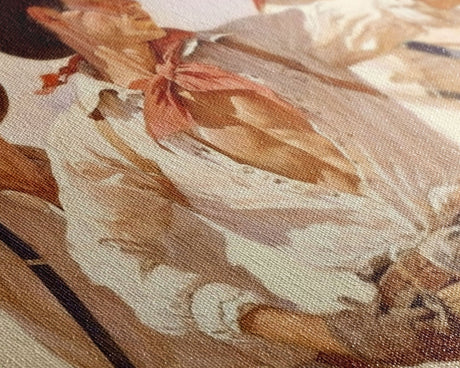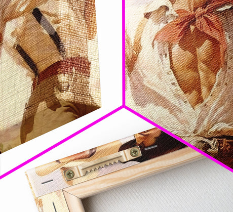 Bright Mexican Style Tall Art Framed Canvas Print Depicting Ornate Blue Door And Rustic Courtyard