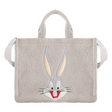 Hop into style with this officially licensed Looney Tunes Bugs Bunny grey faux sherpa travel tote bag! Crafted from faux ultra-soft sherpa material, this spacious tote showcases an adorable Bugs Bunny design that features his iconic face and playful ears. Whether you're heading to class, the office, or a weekend getaway, this tote bag offers both charm and functionality. Carry your belongings in classic Looney Tunes style with this Bugs Bunny Sherpa travel tote.