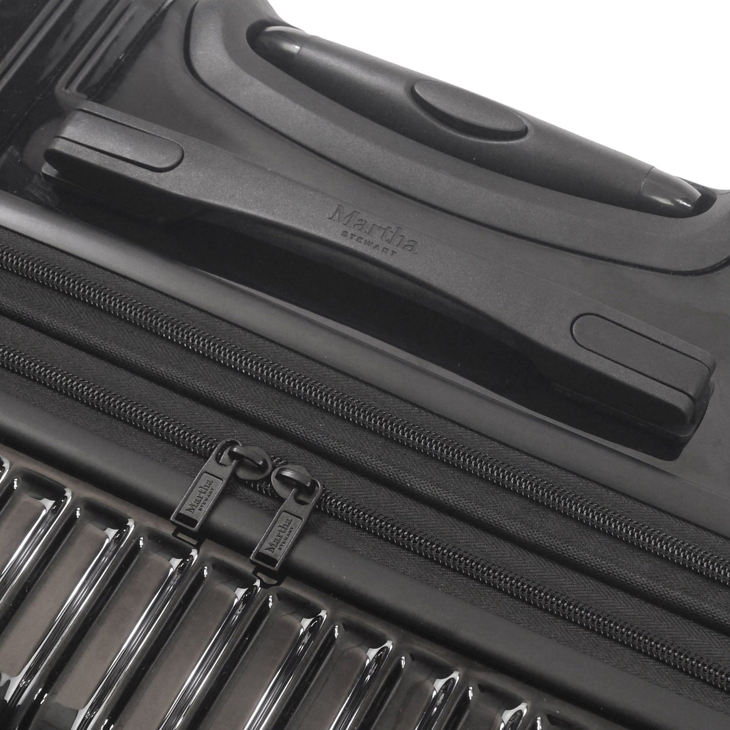 Travel elegantly and efficiently with the Martha Stewart Bedford 26" Hardside Spinner. Designed for those who value both style and practicality, this mid-size suitcase offers a sleek, durable hard shell exterior that resists impact and scratches. It features 360° spinner wheels for effortless movement and a telescopic handle that glides smoothly through airports. The fully lined striped interior includes compression straps, a mesh divider, and zippered compartments for easy organization. Ideal for longer trips, this spinner delivers the perfect blend of sophistication, functionality, and travel-ready durability.