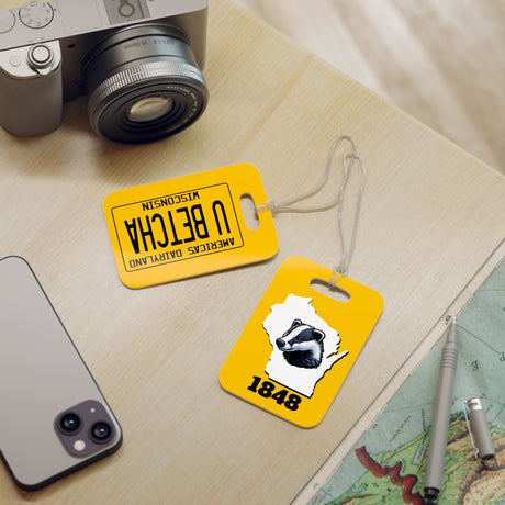 Wisconsin Retro Liscense Plate Luggage Tag - U Betcha - Badger State 1848